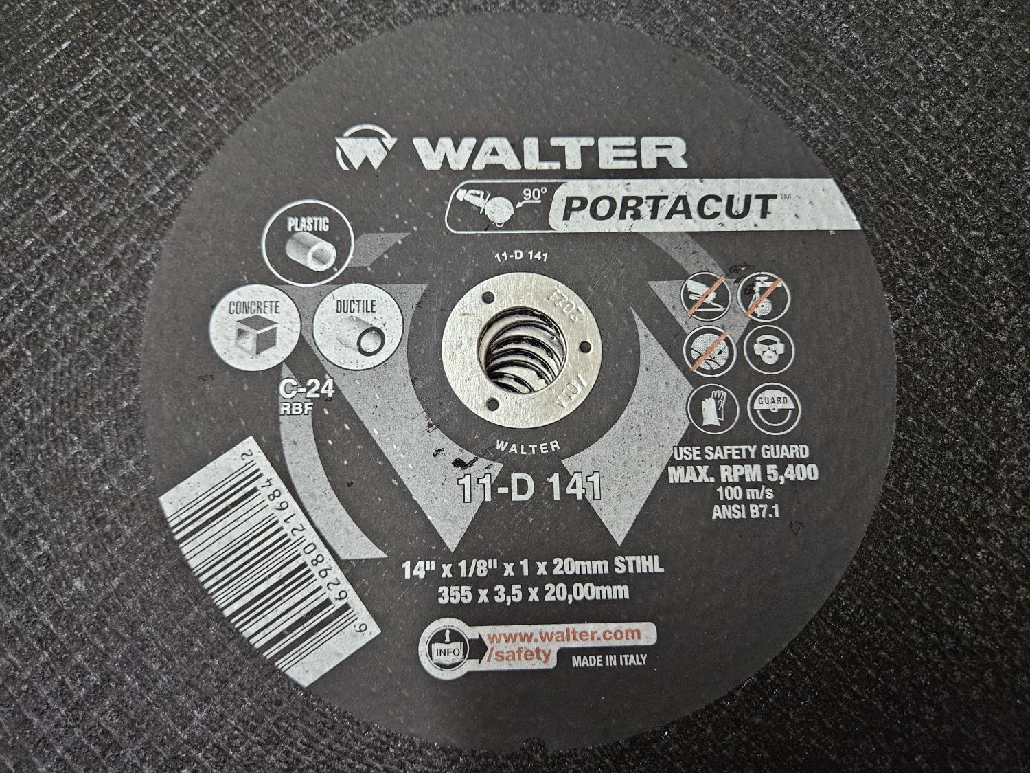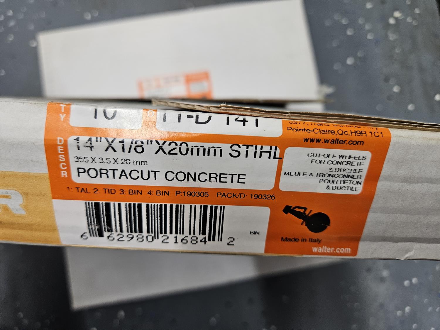 542 (9) Walter 11-D141 14 Inch X 1/8 Inch X 20 mm Inch Portacut Concrete Discs (Unused)