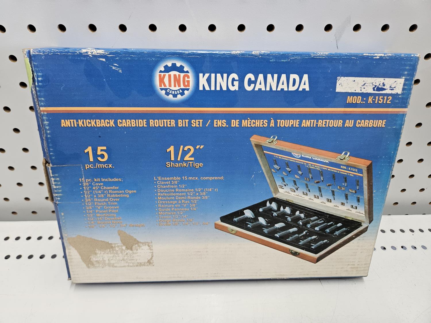 1411 King Canada 15 Piece 1/2 Inch Carbide Router Bit Set (Unused)