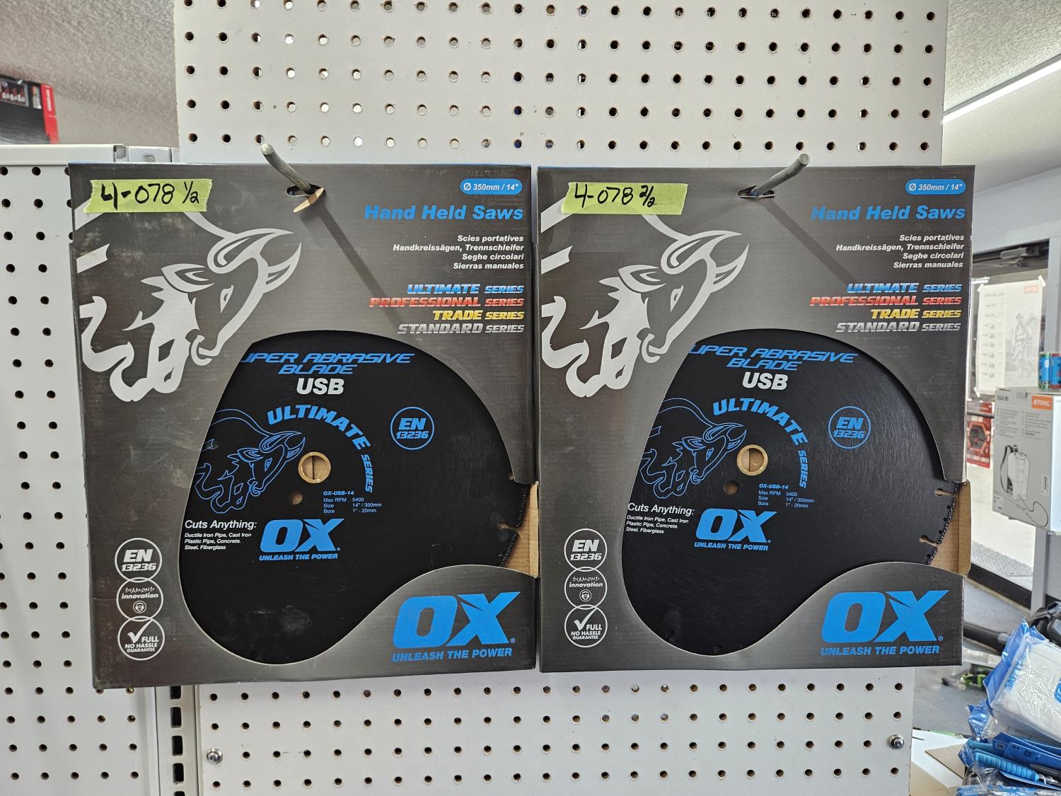 527 (2) Ox 14 Inch Super Abrasive Cutting Blades (Unused)