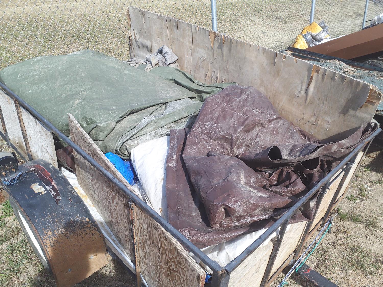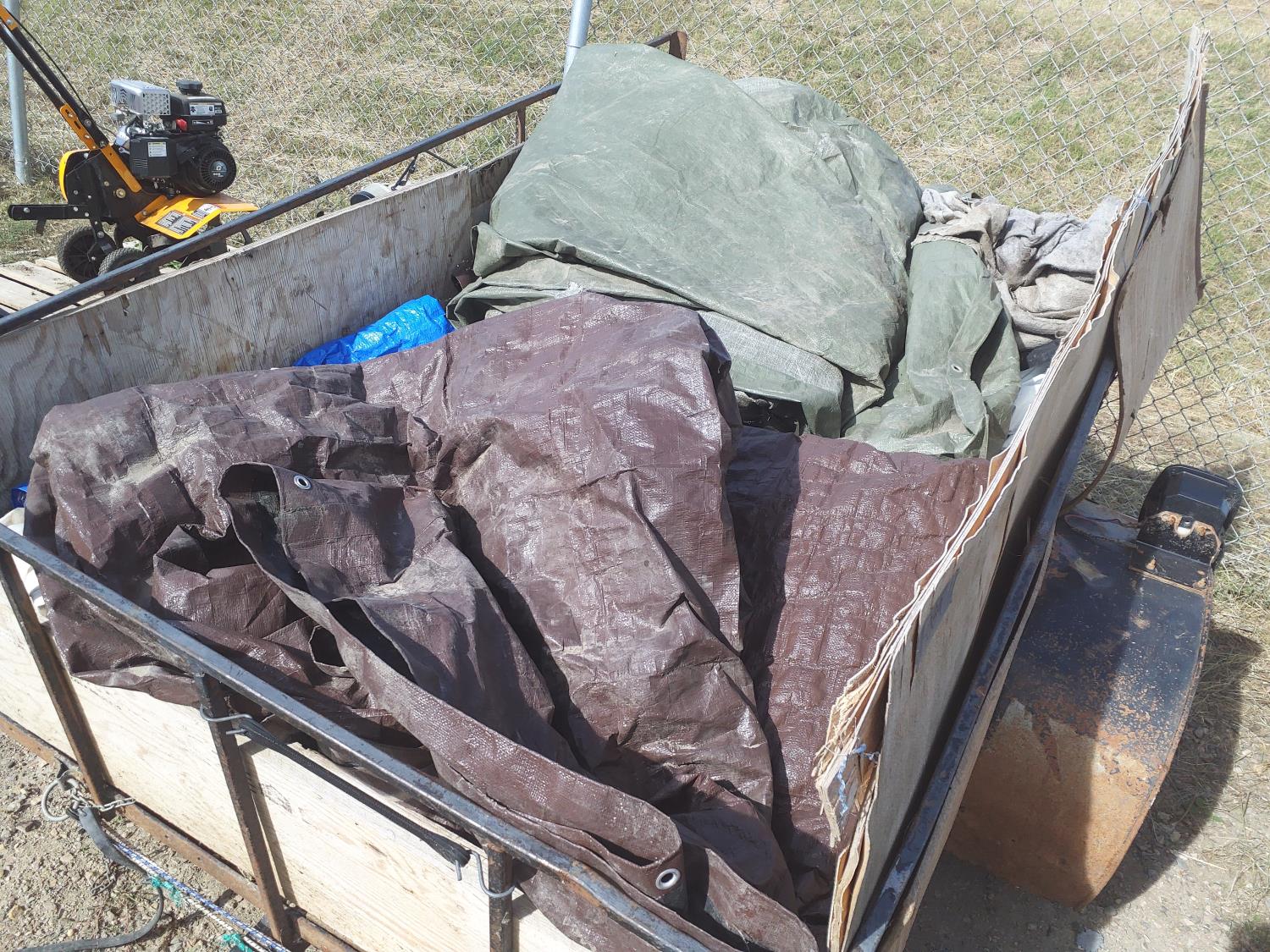1090 Custombuilt 8 Ft S/A Flat Deck Utility Trailer w/ Qty of Tarps