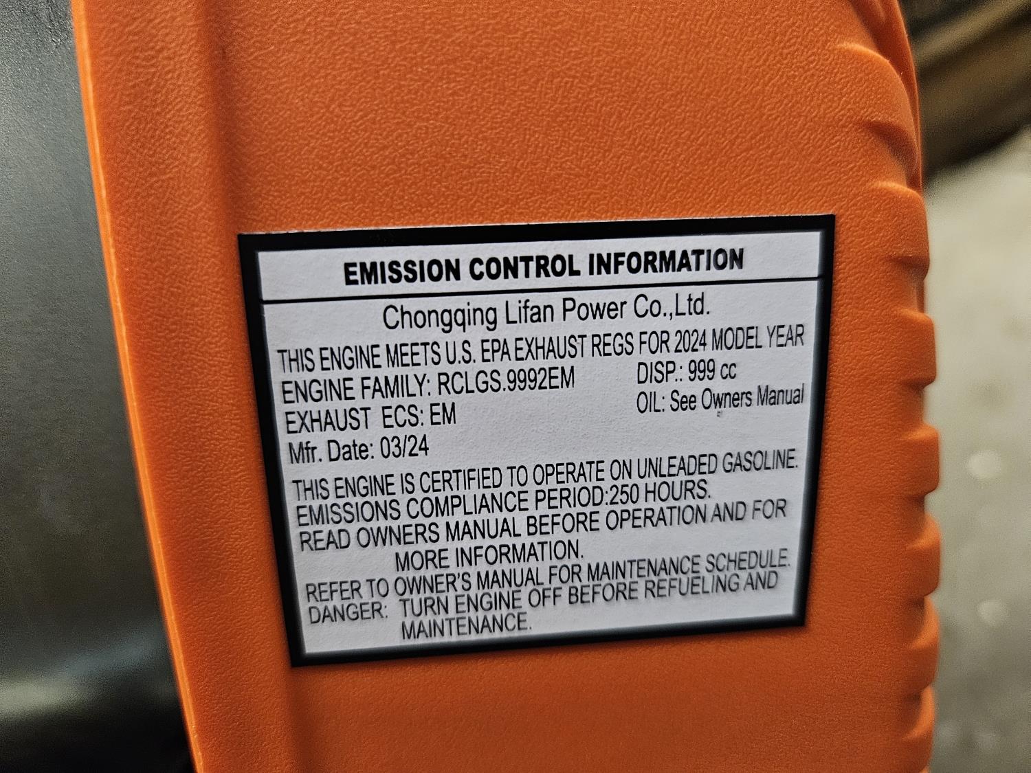 992 Lifan 2V90F 999 cc Gas Engine (Unused)