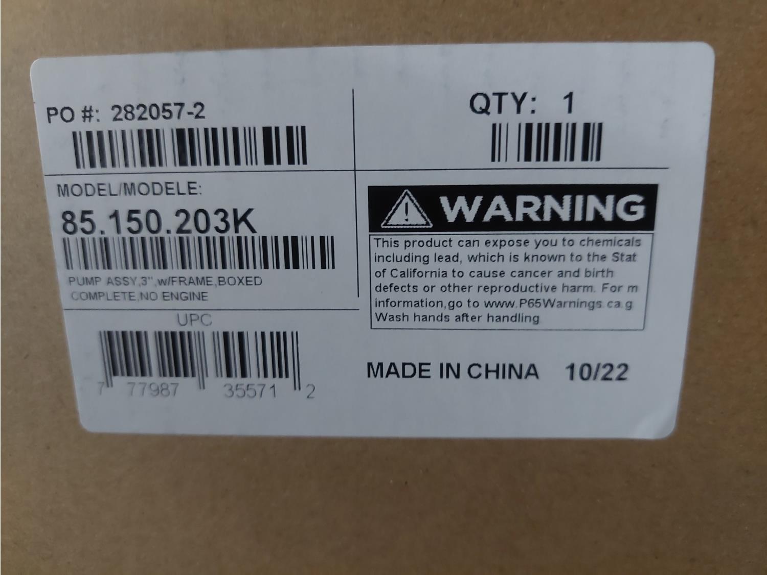 898 BE 3 Inch Pump Assembly w/ Frame (Unused)