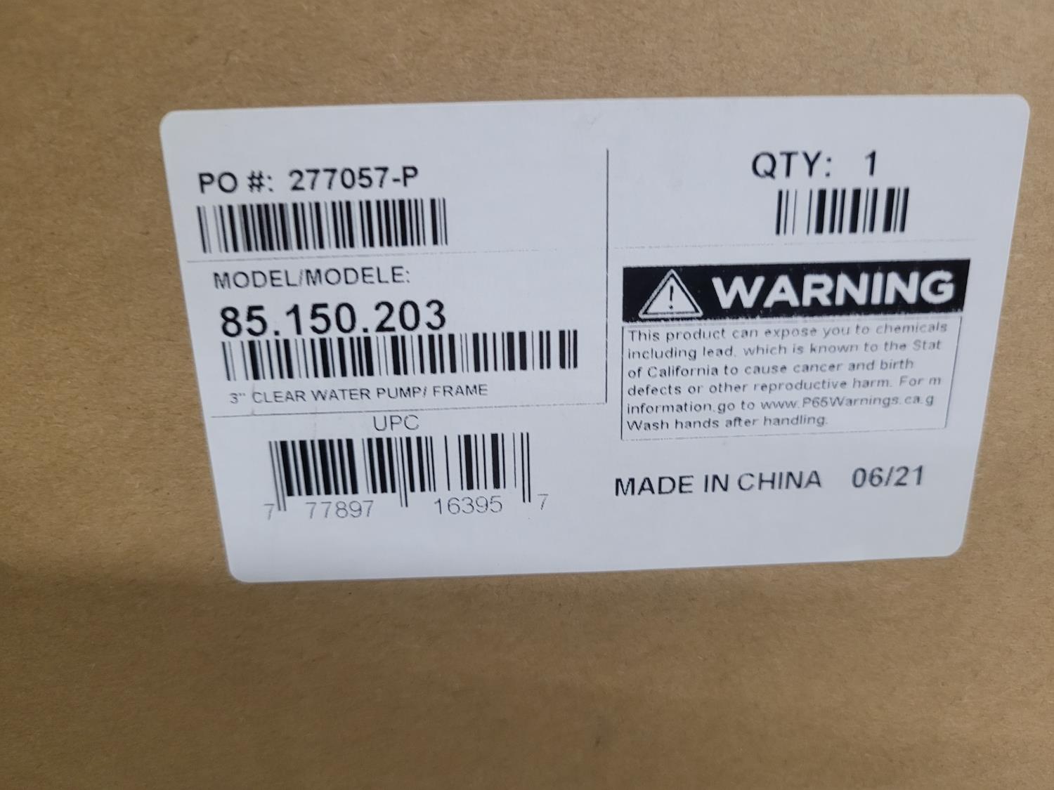 895 BE 3 Inch Trash Pump Assembly w/ Frame (Unused)