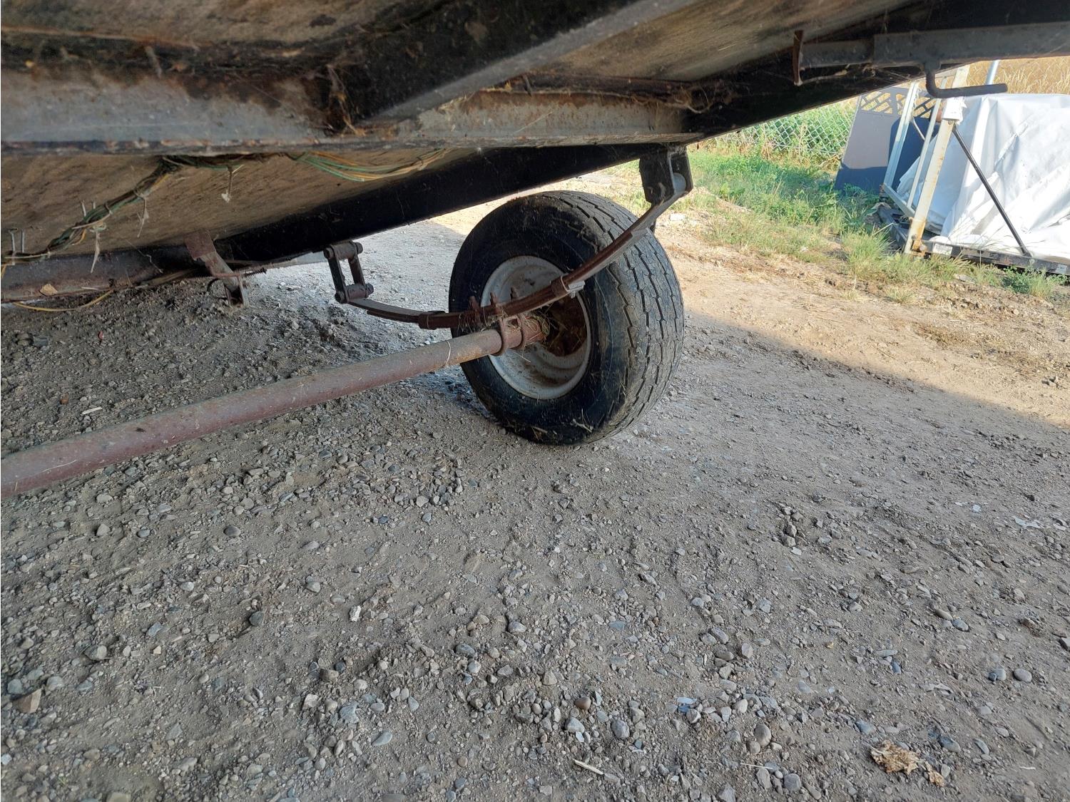 70 inch wide deck, wood deck, spring suspension, ball hitch, 40 inch neck, 2000 lb axles, 20.5X8.0-10 tires