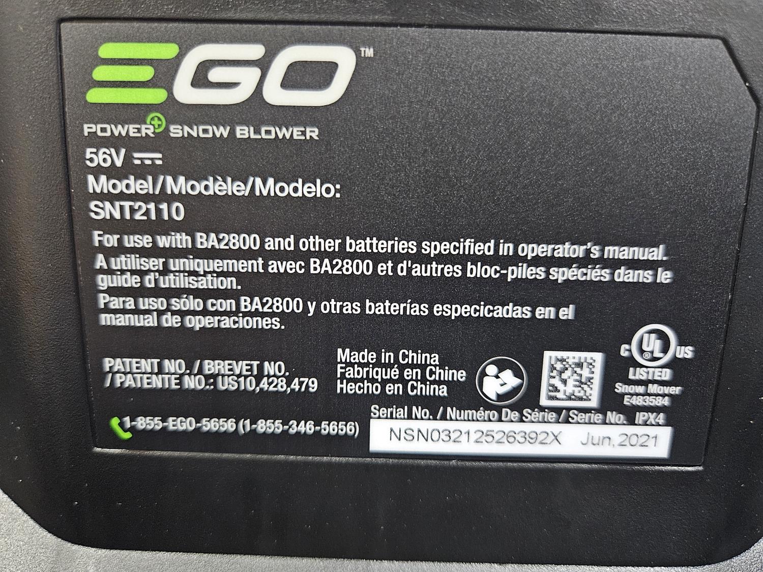 122 E-Go SNT2110 Cordless Snow Blower w/ Battery & Charge Station (Unused)