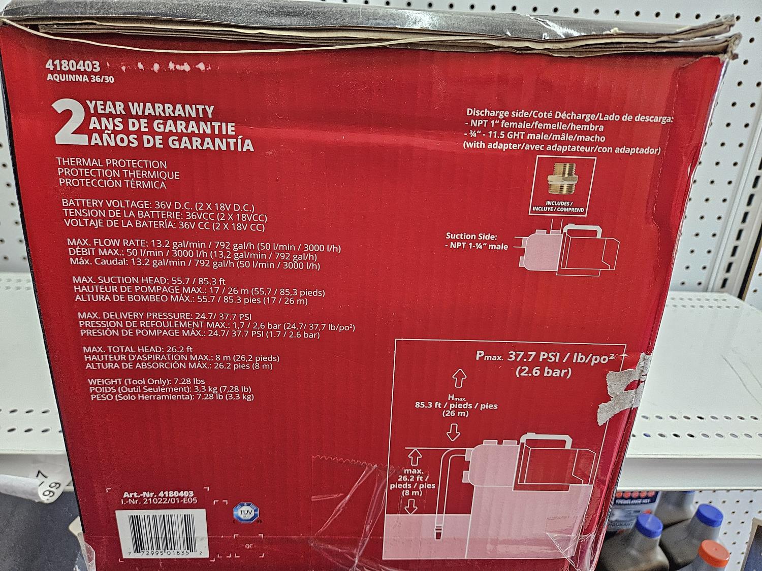 1430 Einhell 36V Cordless Water Pump (Unused)