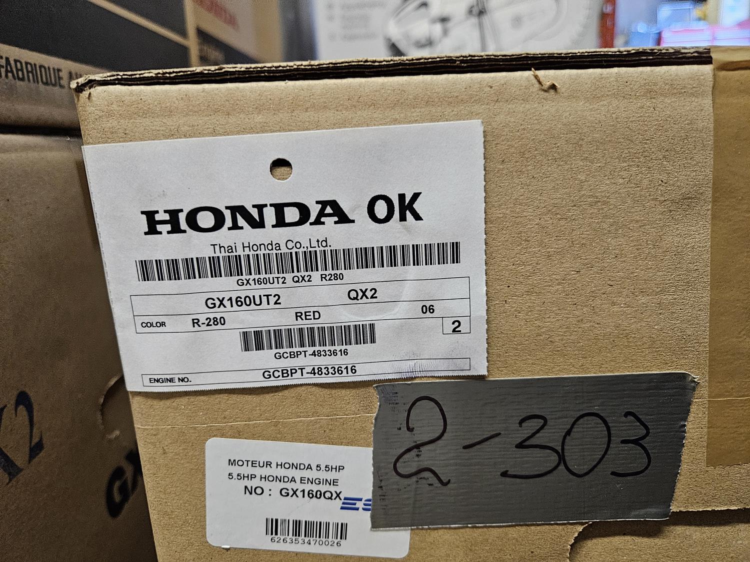 1013 Honda GX160 Gas Engine (Unused)