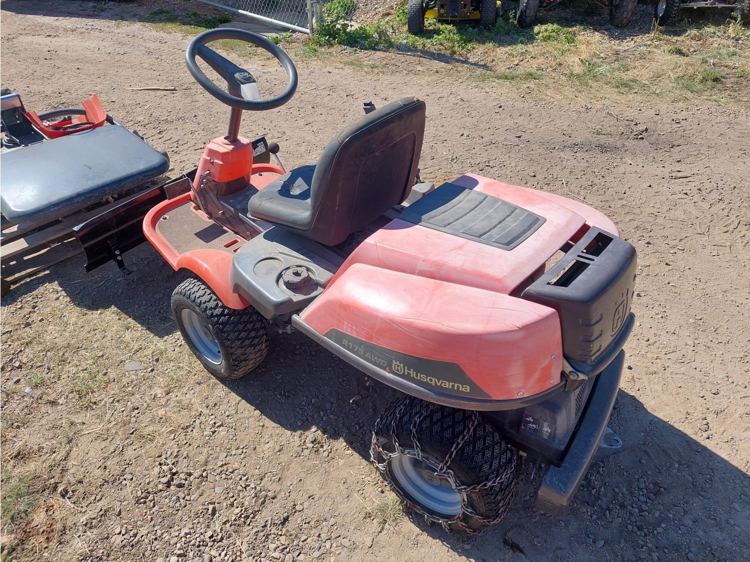 158 Husqvarna R175 AWD Lawn Tractor w/ Snowplow and Mowing Deck