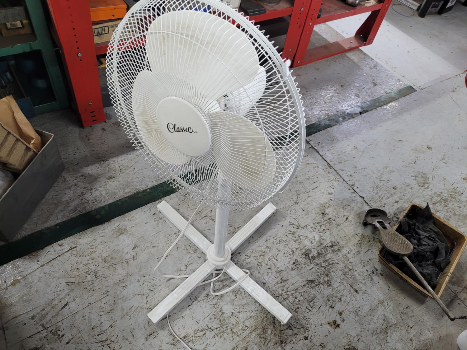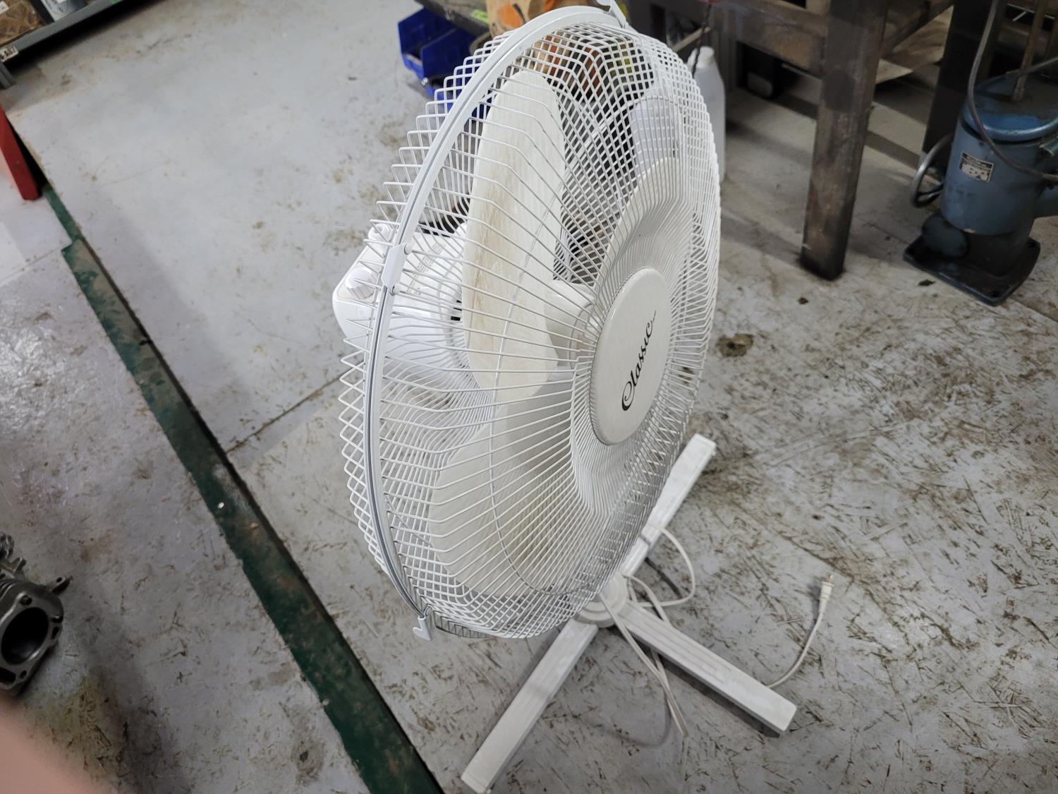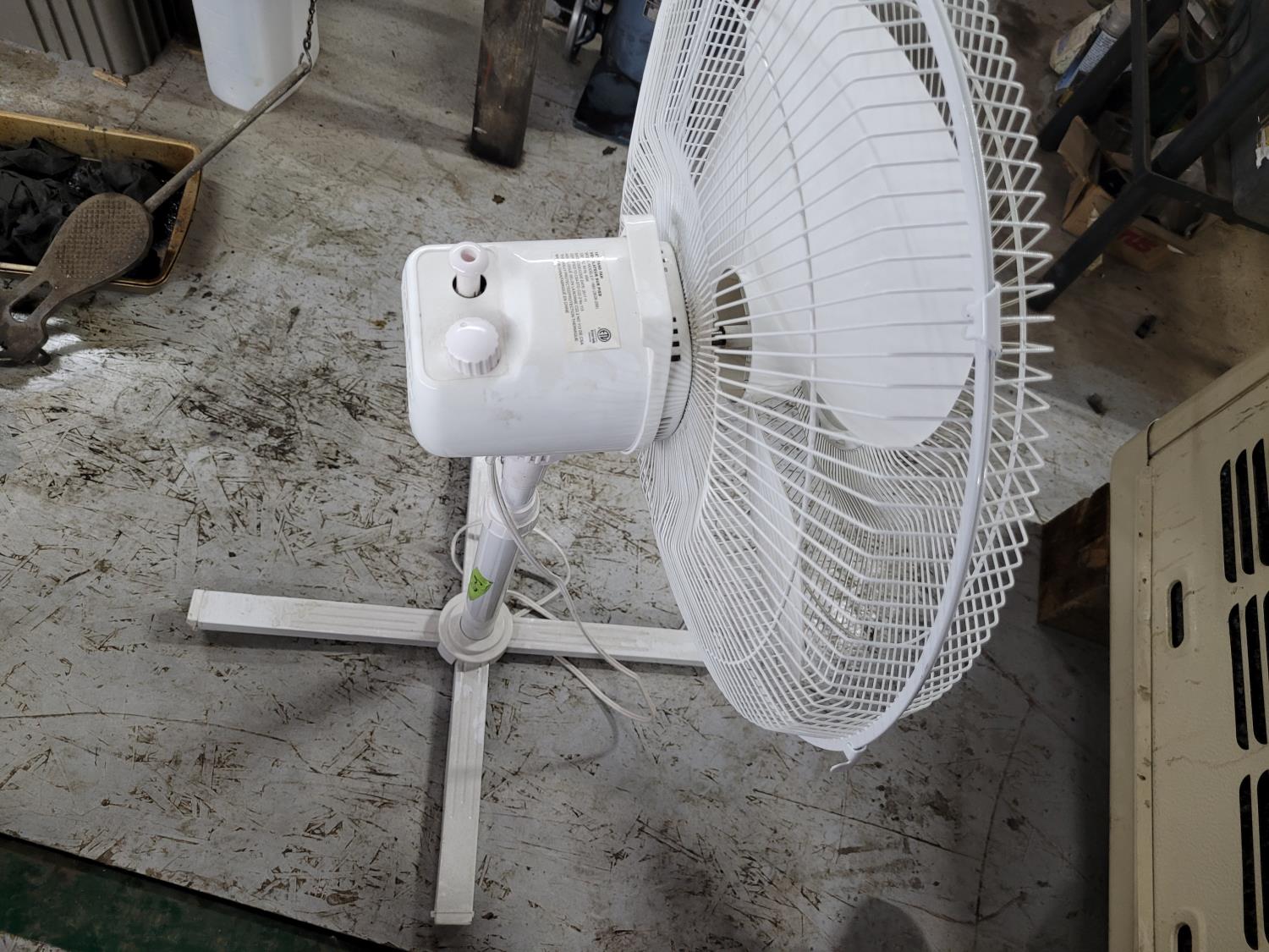 14 Oscillating Stand Up Fan w/ HP Desktop & Christmas Decorations