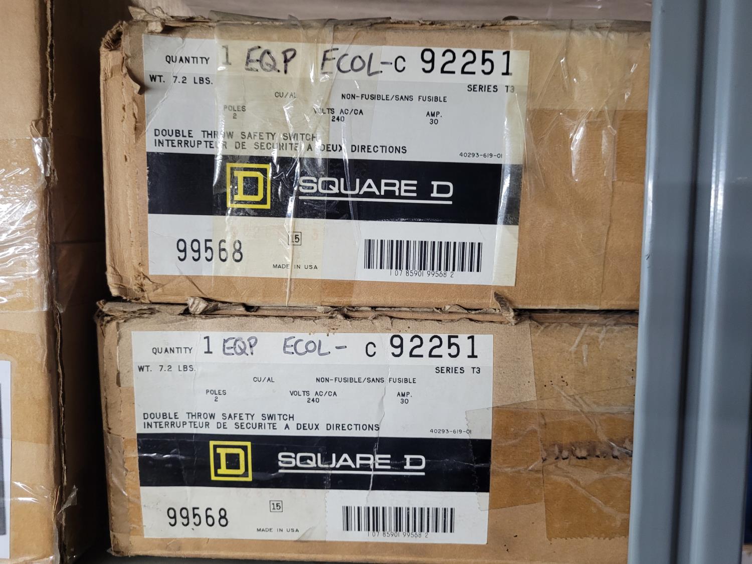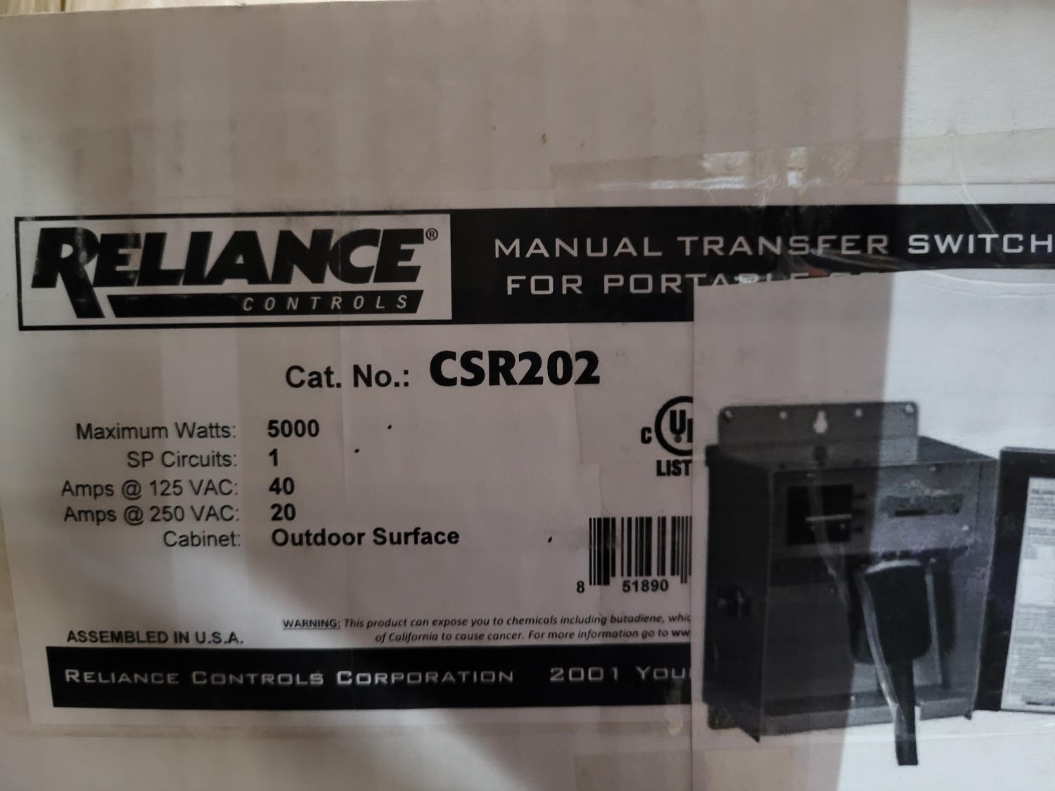 881 Qty of (3) Reliance Manual Transfer Switches w/ Square D Double Throw Safety Switches