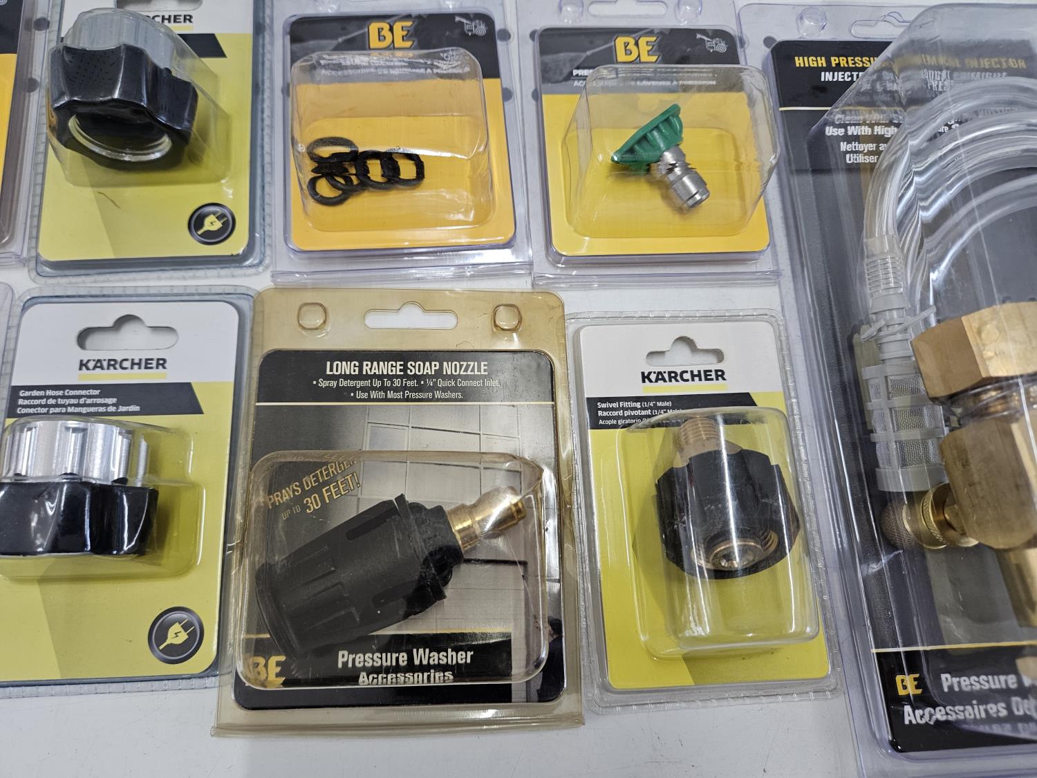Rotary turbo nozzles, garden hose connectors, long range soap nozzle, o-rings, 1/4 inch male swivel fitting, high pressure chemical injector