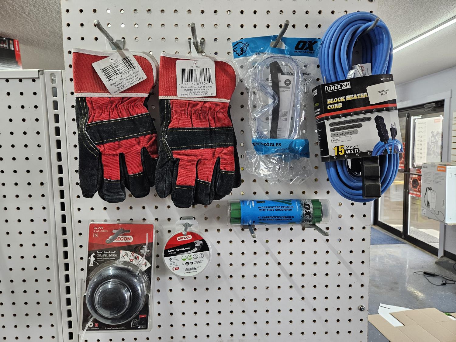Oregon Trimmer Head, Gloves, Replacement String, Extension Cord, Pencils