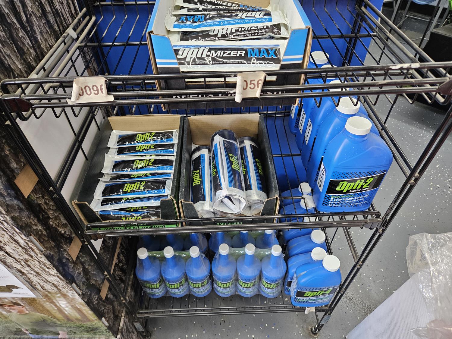 Opti-2 injector lube, Opti-Mizer Max fuel treatment, Opti-2 2 cycle engine lubricant, Opti-4 engine lubricant