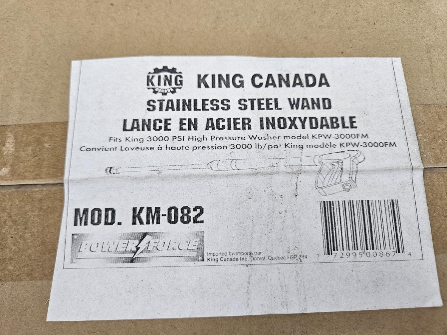 807 King Canada KM-082 Stainless Steel Pressure Washer Wand (Unused)