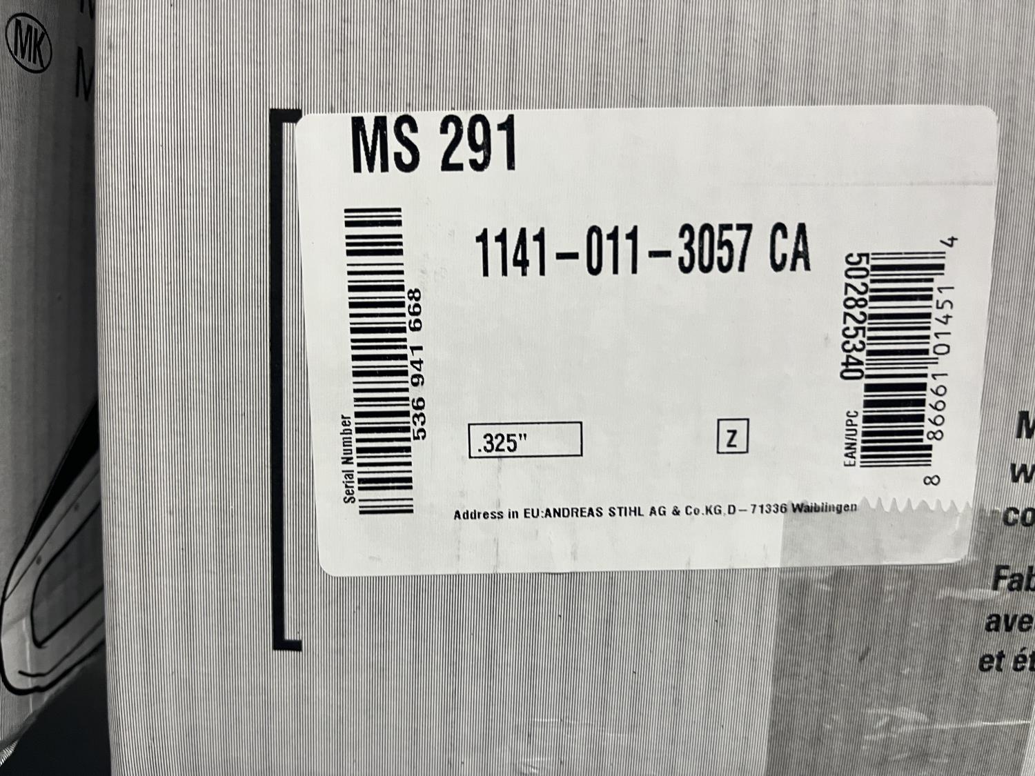 371 Stihl MS291 Gas Chainsaw (Unused)