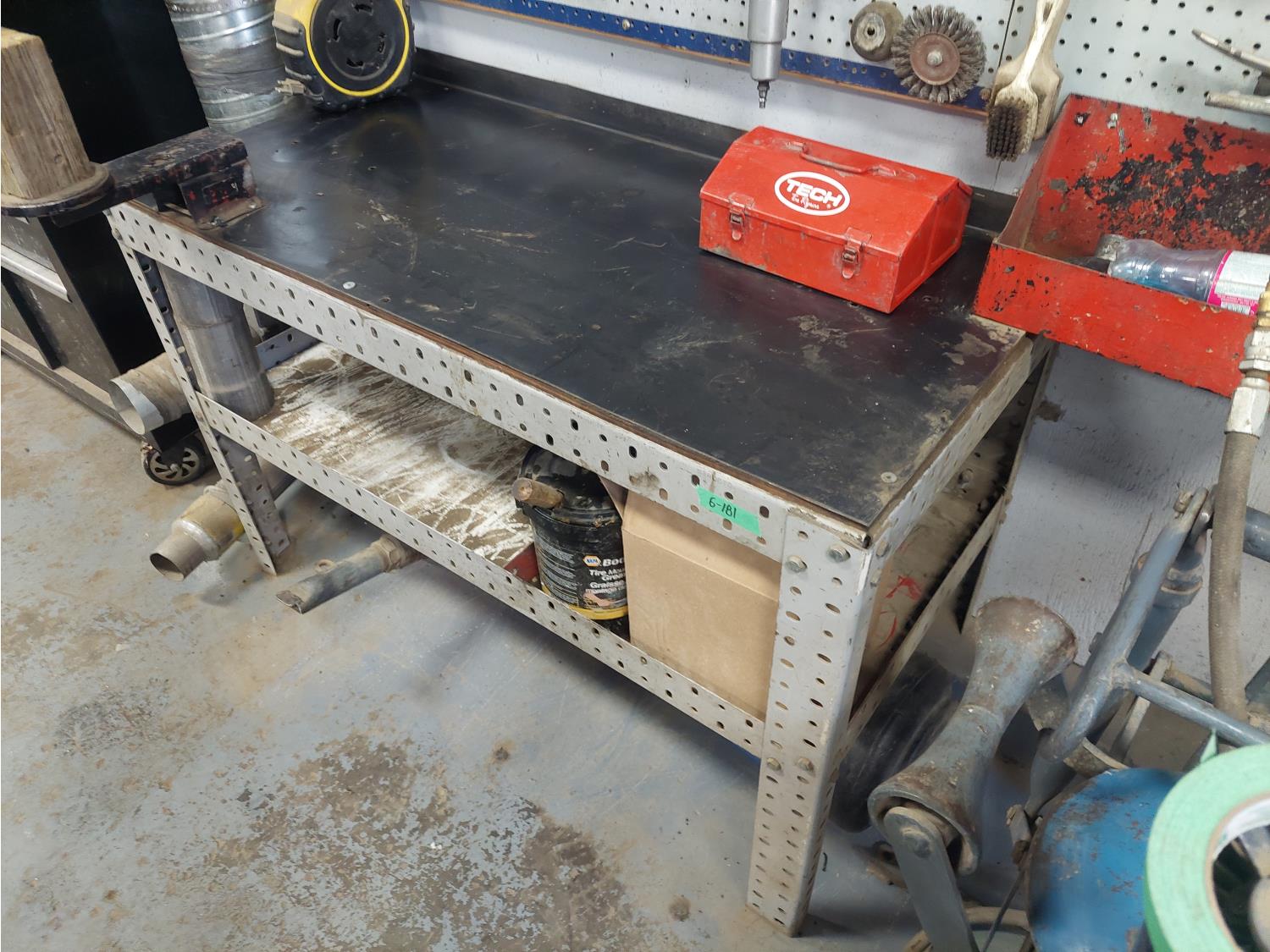 1513 Work Bench with Various Supplies and Bead Blasters