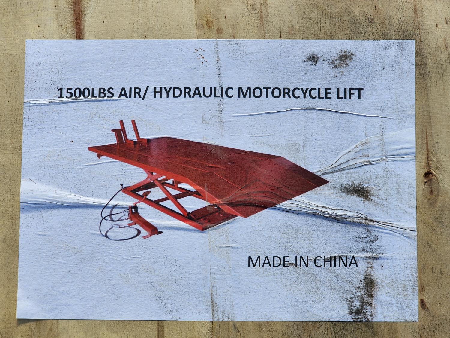 476 1500 lb Air Hydraulic Motorcycle Lift (Unused)
