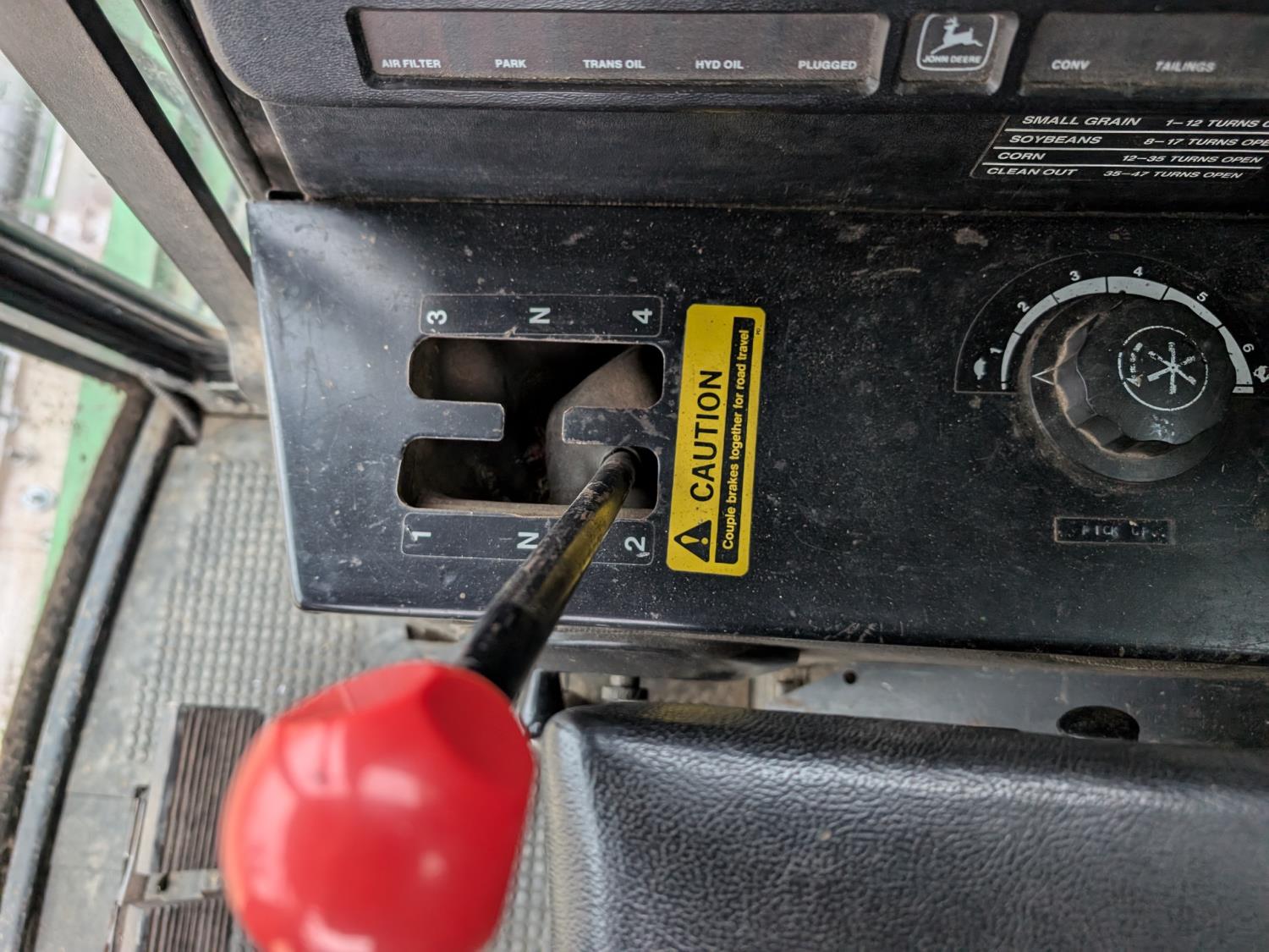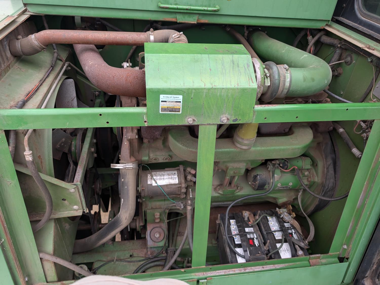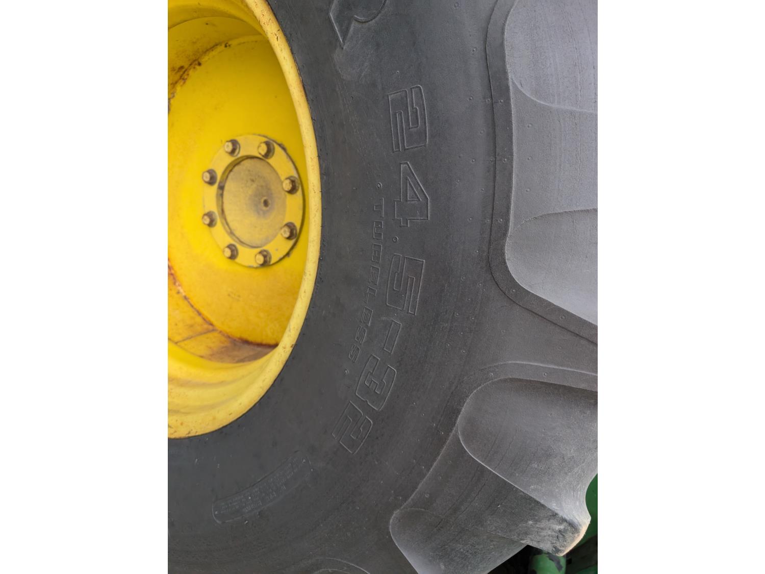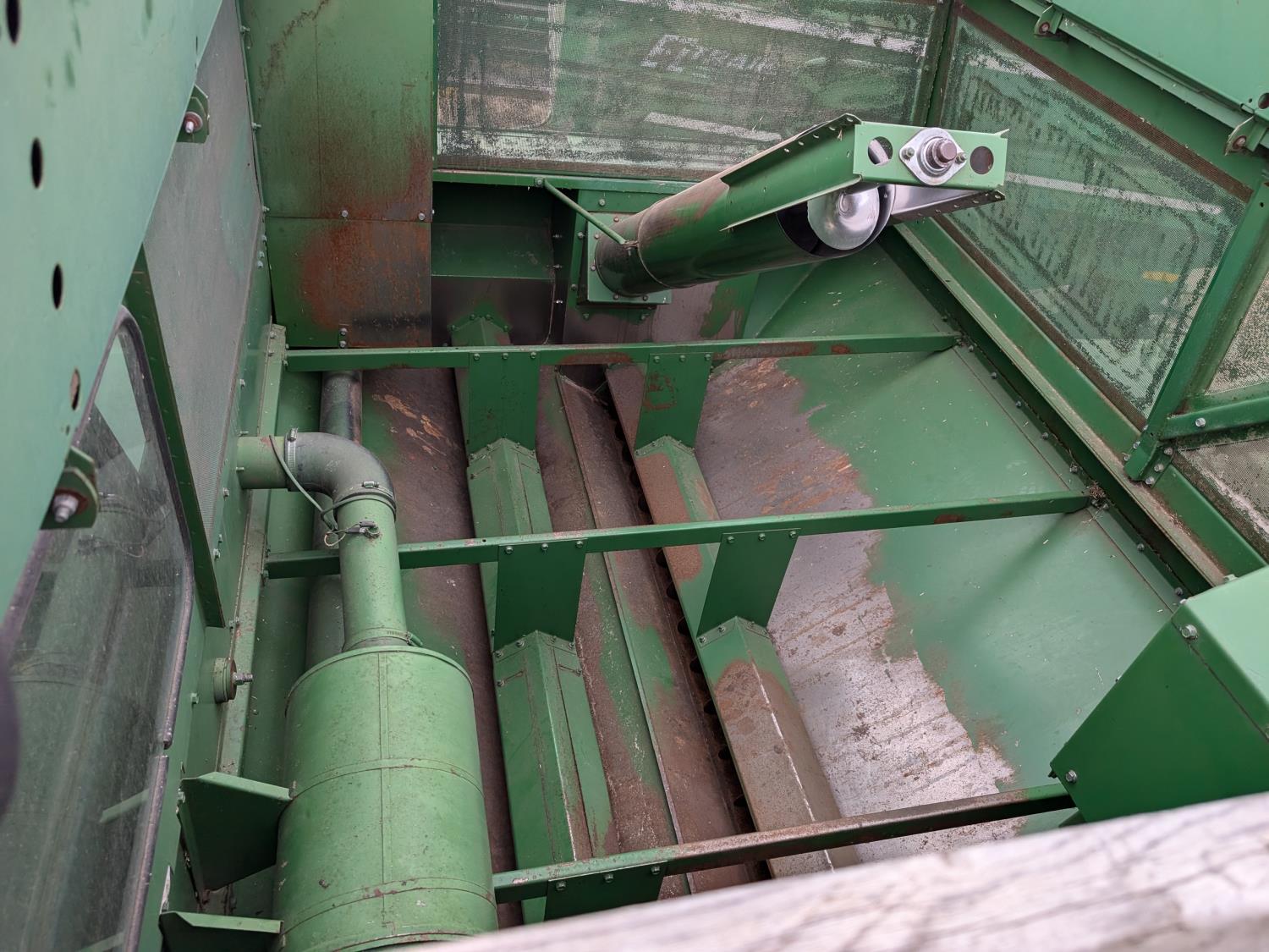 John Deere pick-up header, variable speed reel, rock trap, yield & moisture, chopper, grain tank extensions, hydrostatic drive, A/C, radio, 24.5-32 front tires, 11.25-24 rear tires