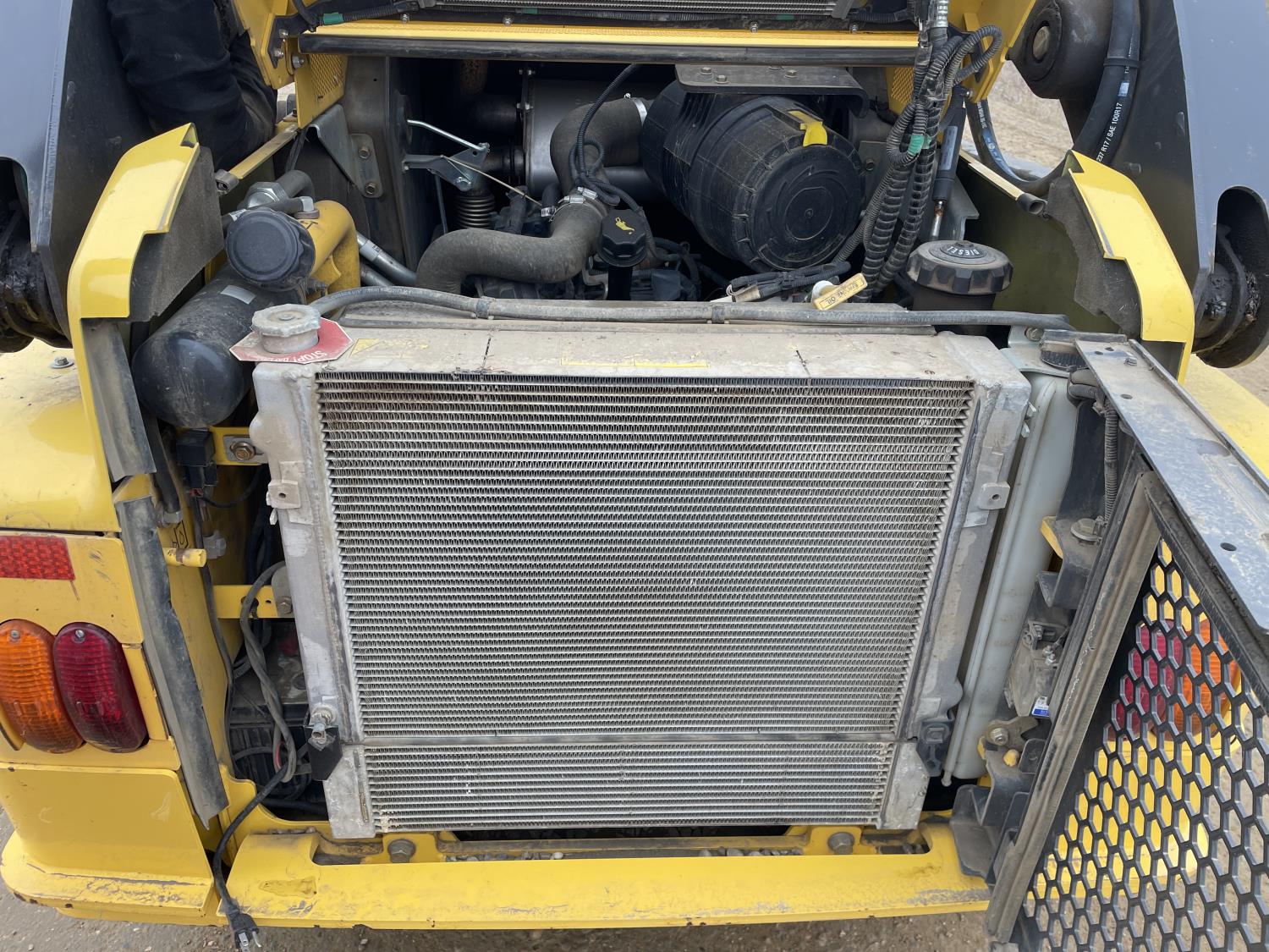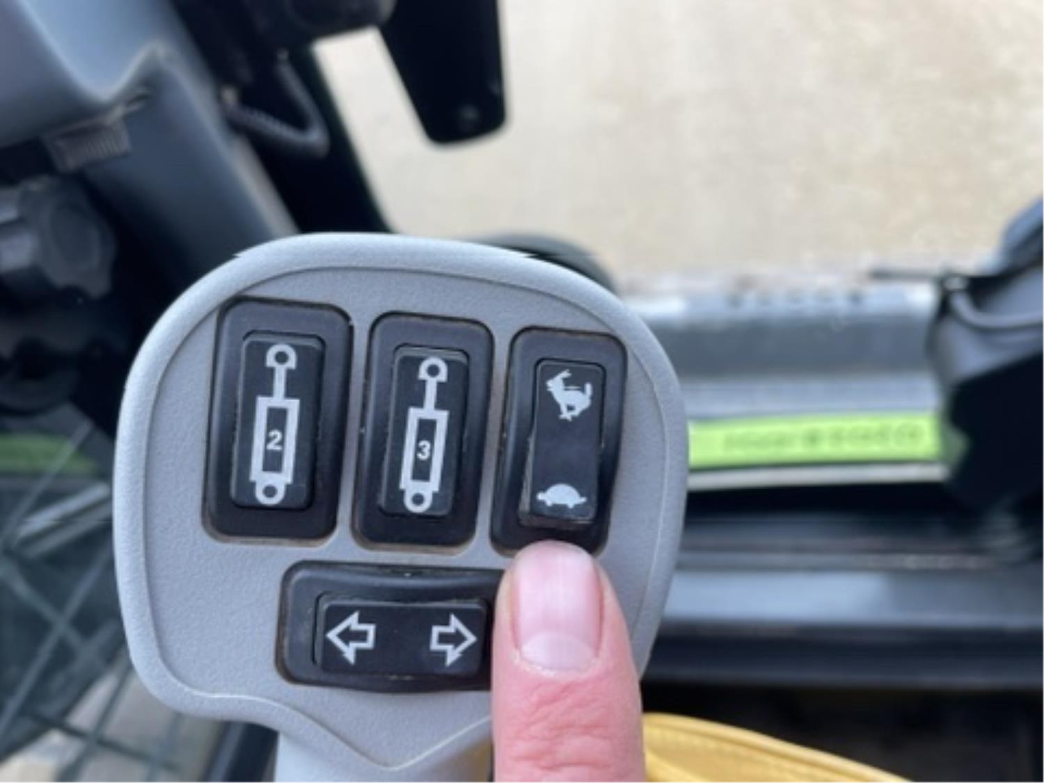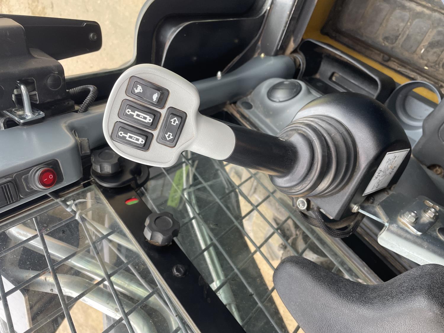Enclosed cab, A/C, control pattern change, pilot controls, diesel engine, 2 speed transmission, Joystick Steering, , 72 inch smooth bucket, hydraulic Q/C coupler, 12X16.5 tires