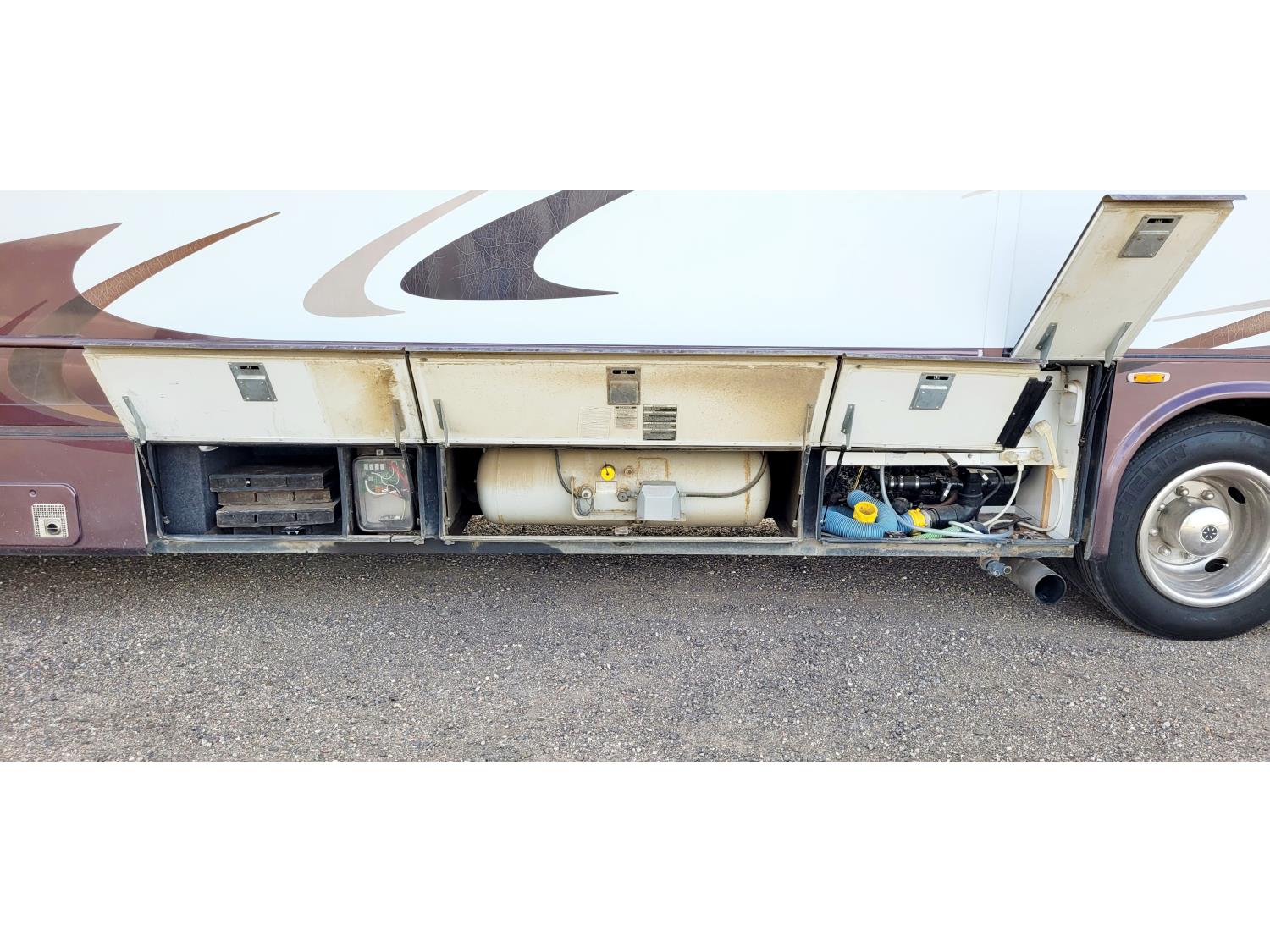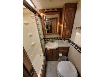 2004 Chevrolet Workhorse W22 S/A chassis, 8.1L Vortex V8 gasoline/LPN engine, Onan 5500 watt generator, 2 slides, hydraulic leveling, master bedroom, bathroom, kitchen