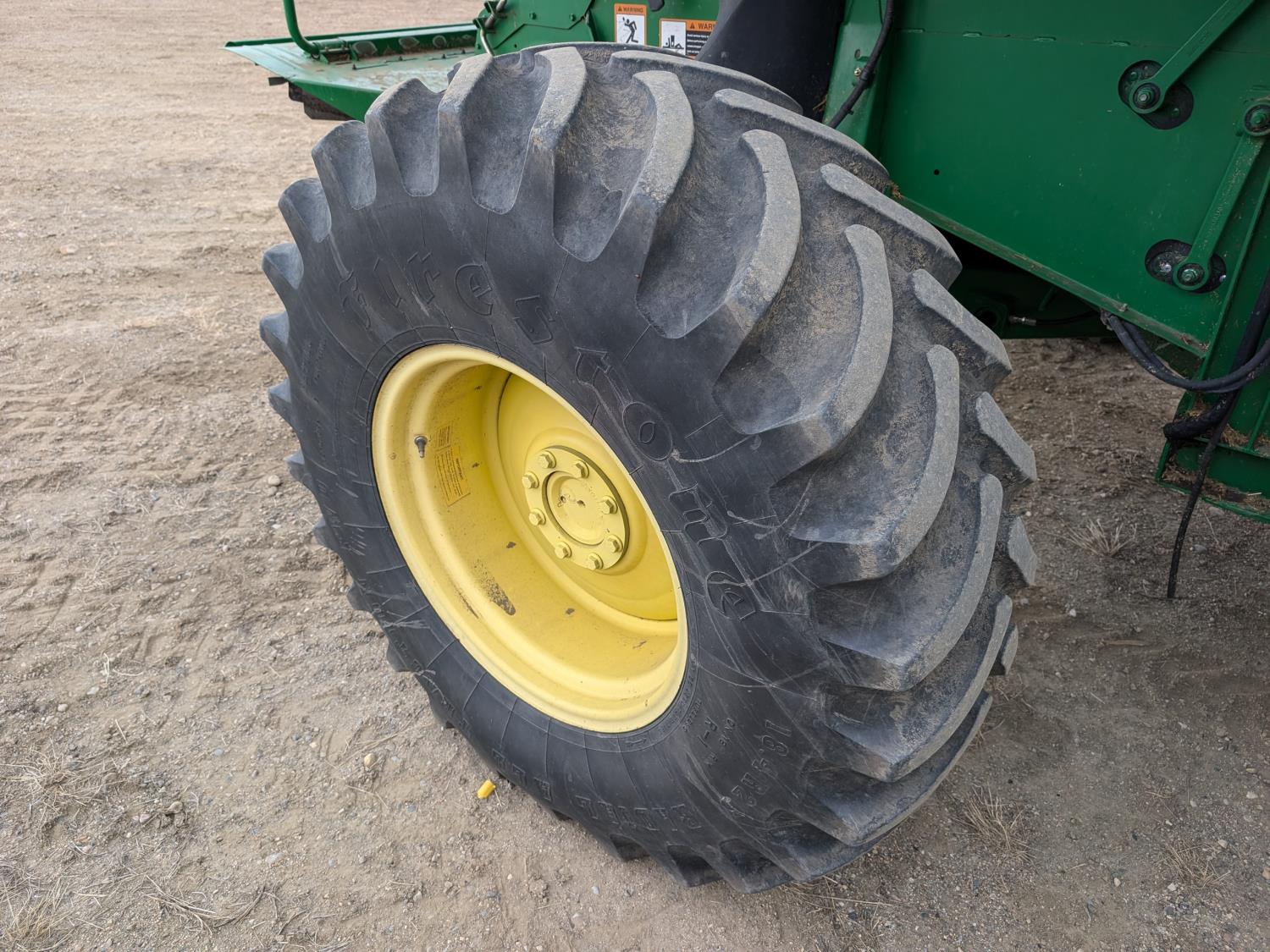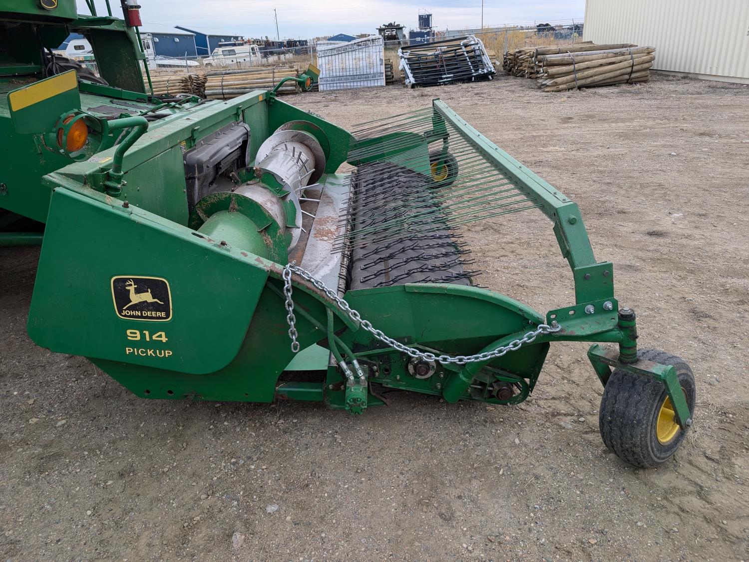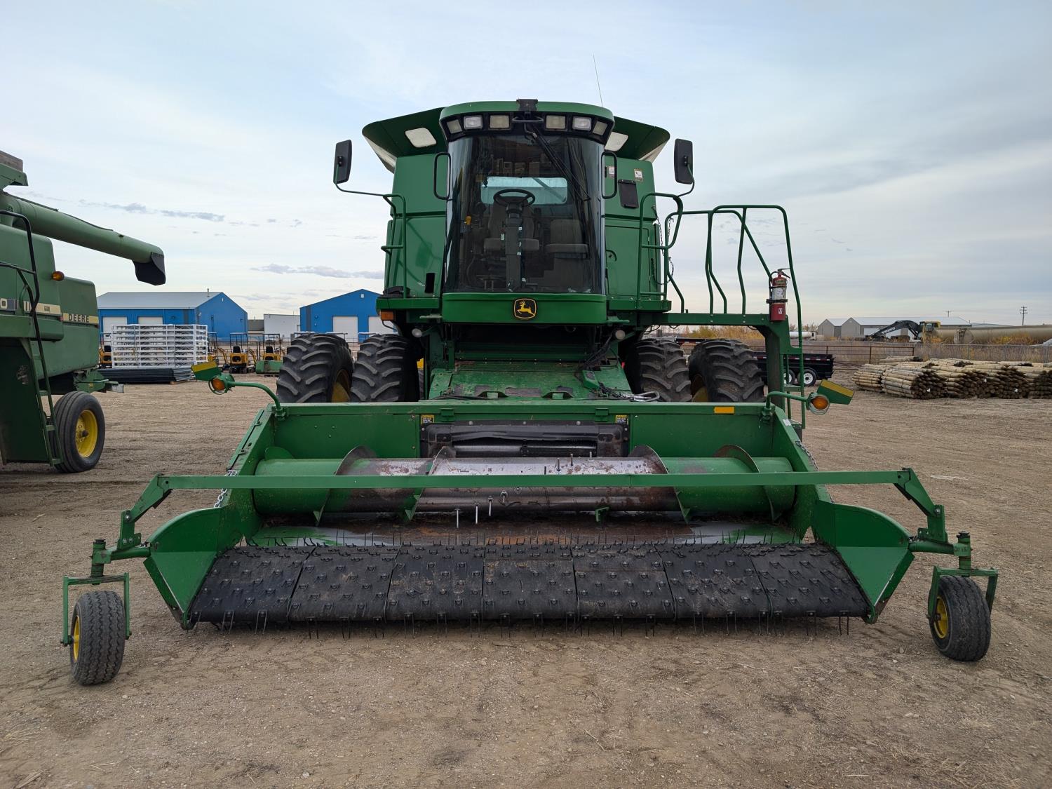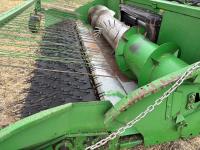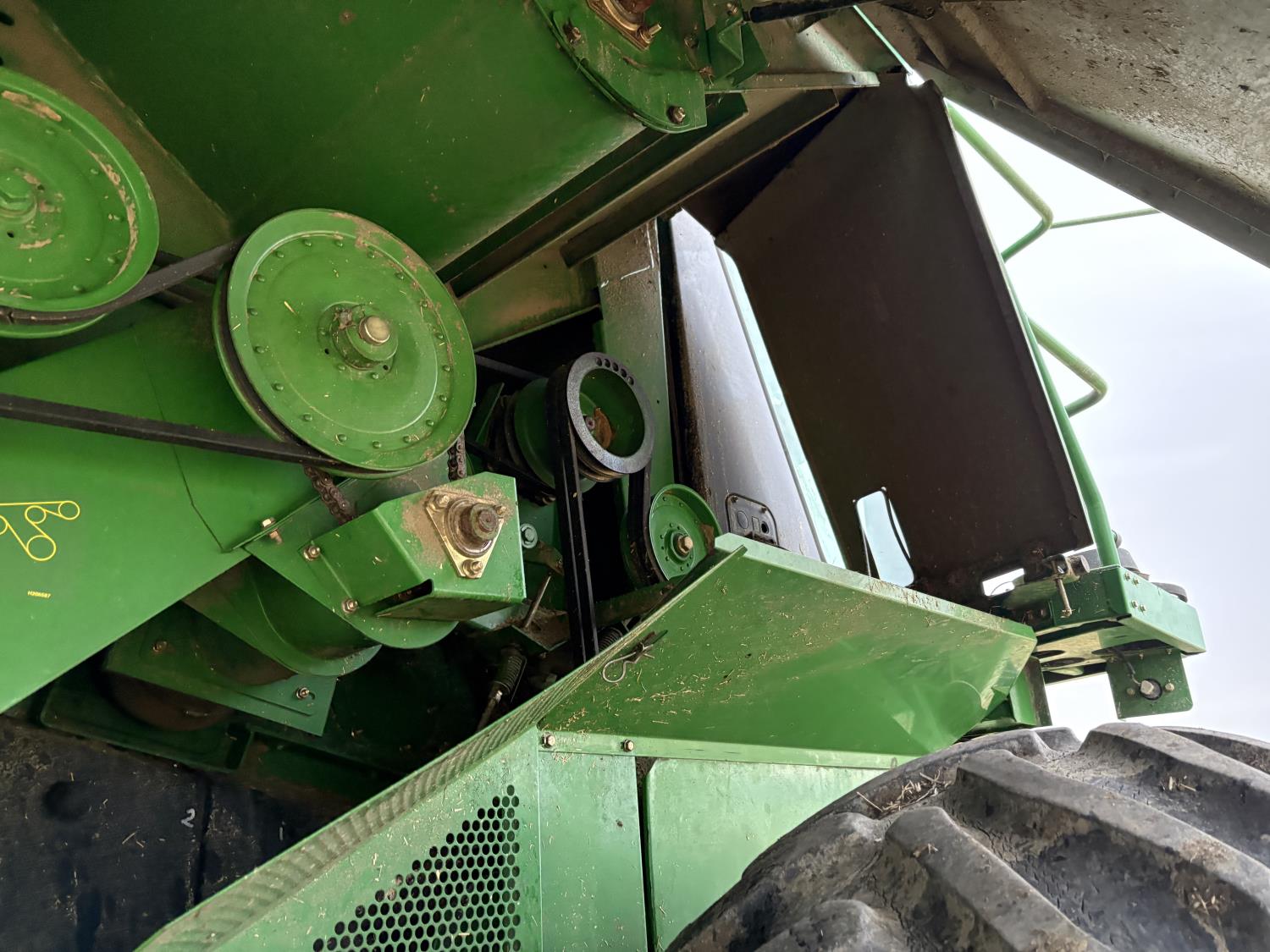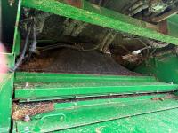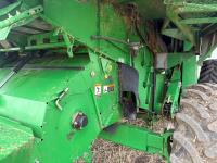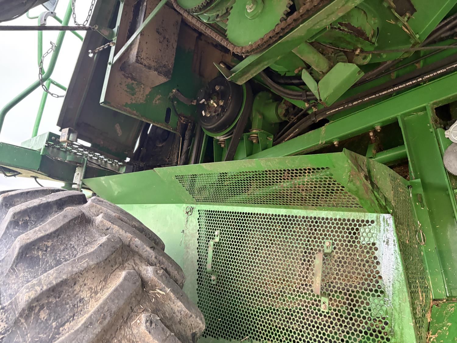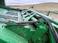 1999 John Deere 914P 14 ft pick-up header, variable speed reel, auto header height, fore & aft, reverser, lateral tilt, rock trap, yield & moisture, chopper, grain tank extensions, A/C, radio, air ride seat, buddy seat, Autotrac universal 300 steering wheel, mount & wiring for monitor, 520/85R42 front tires, duals, 18.4R26 rear tires
