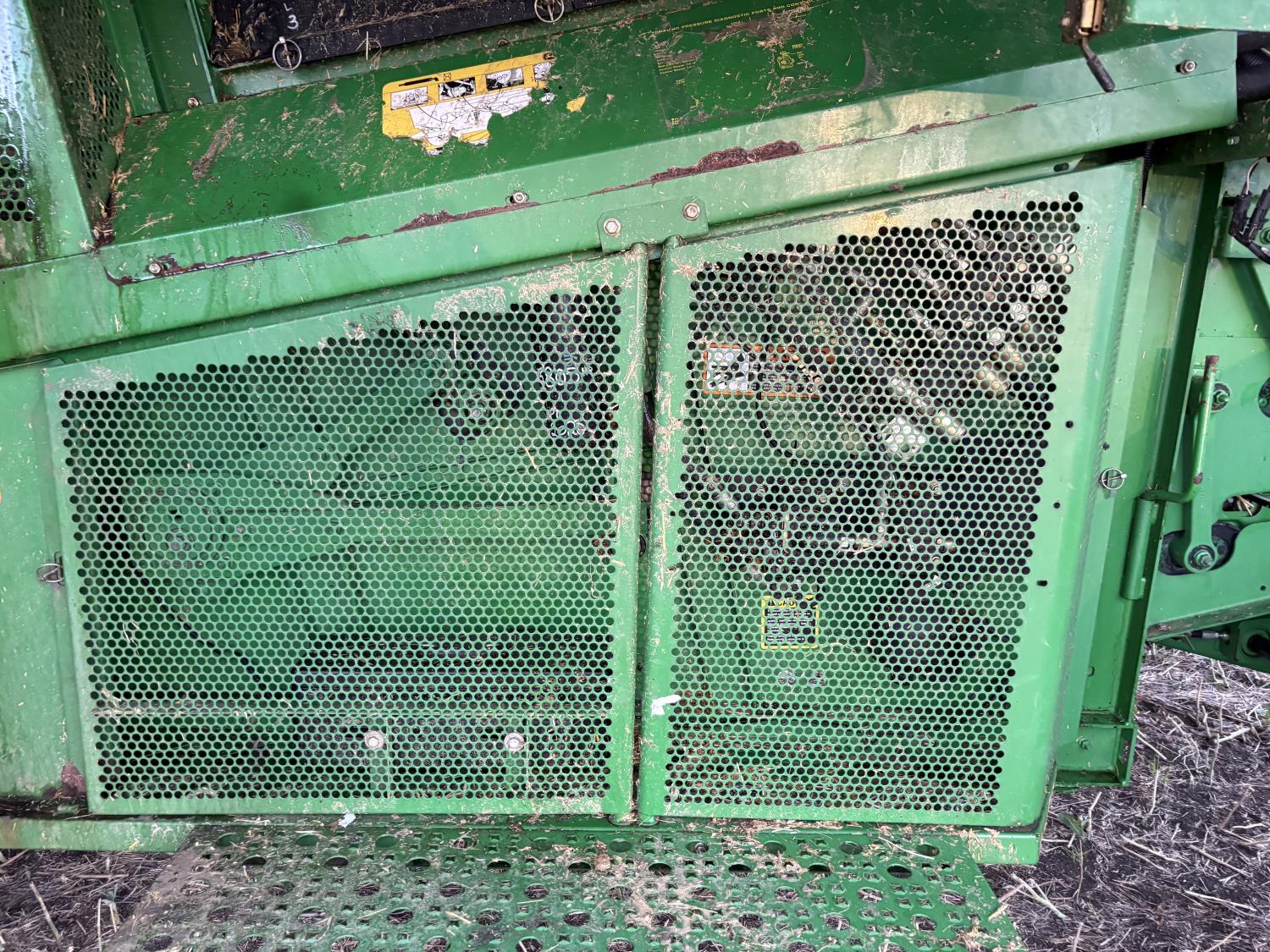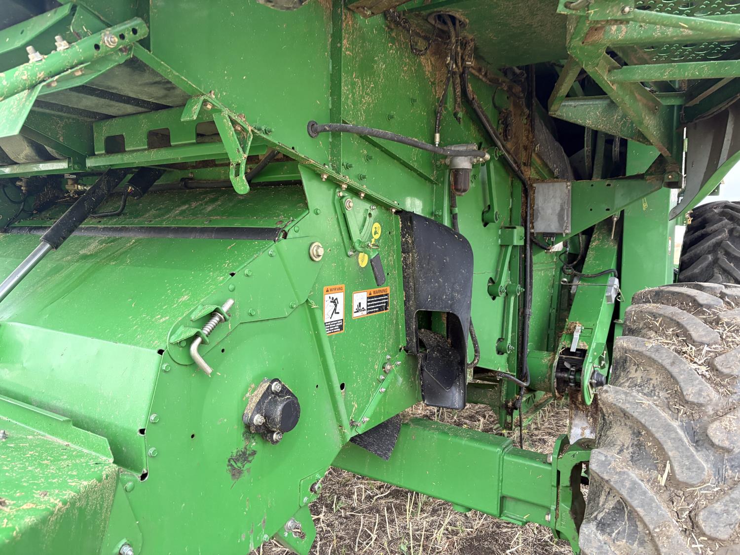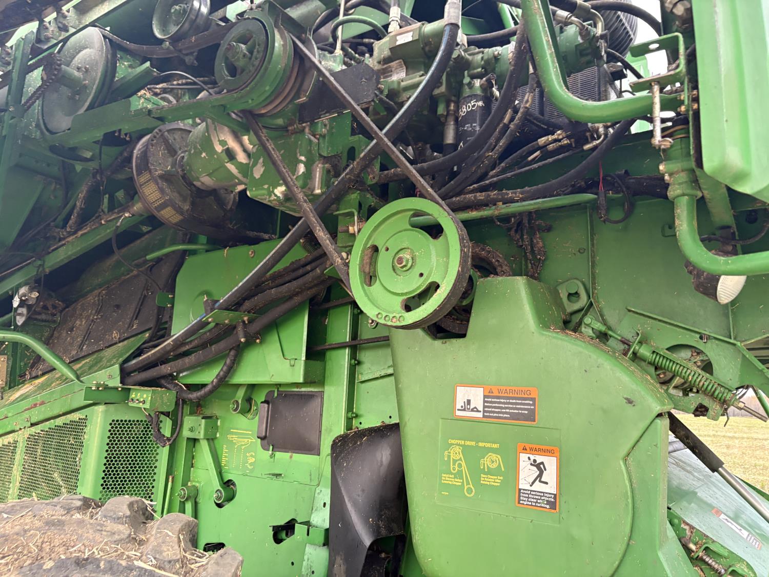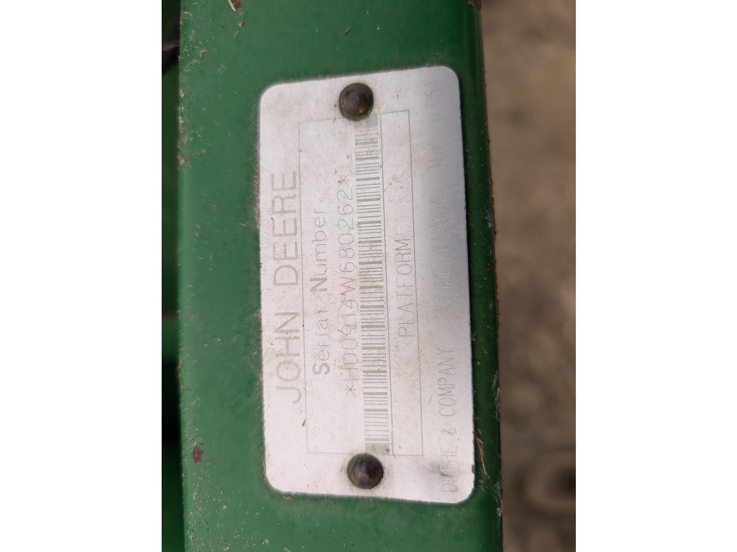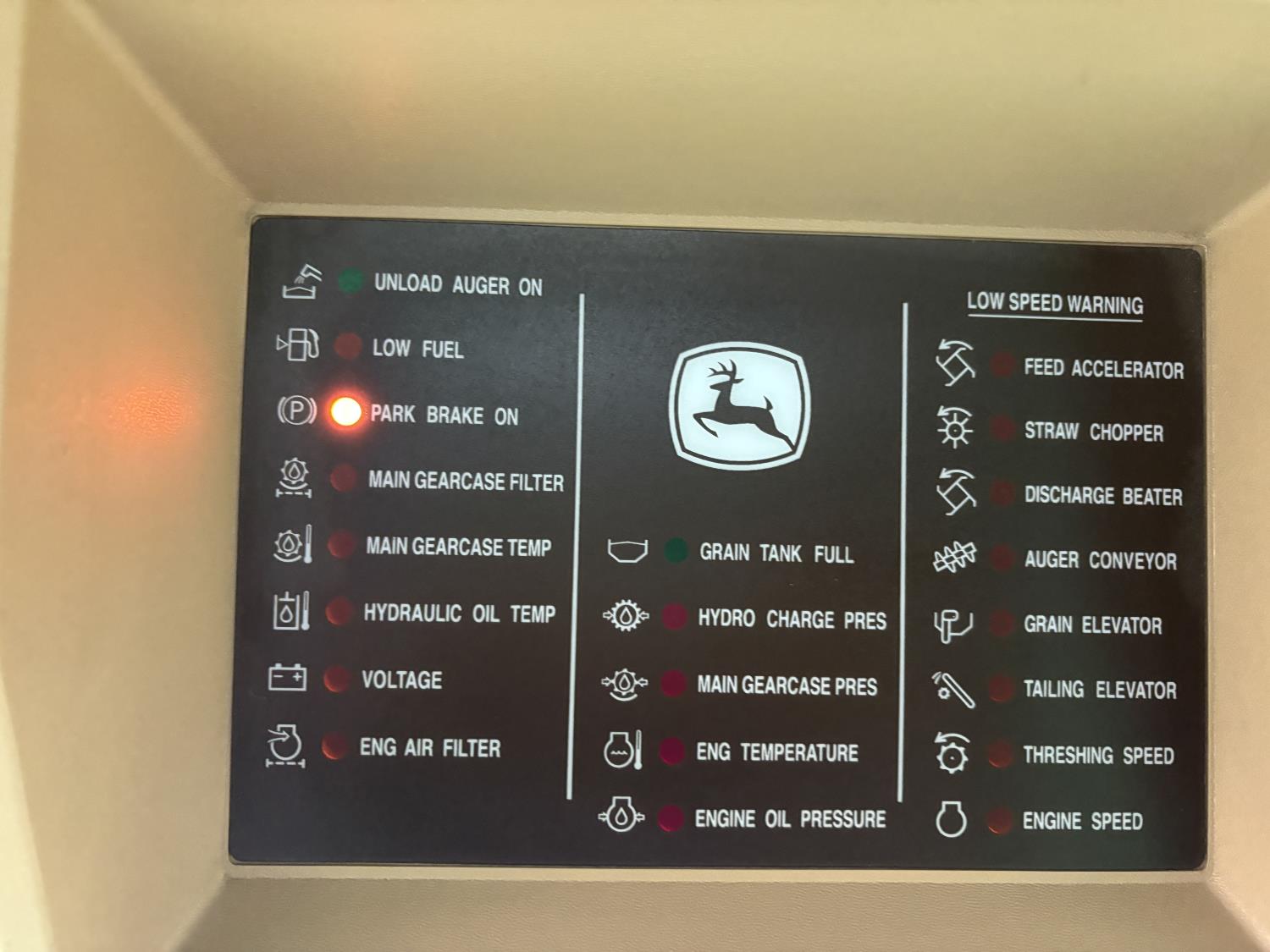 1999 John Deere 914P 14 ft pick-up header, variable speed reel, auto header height, fore & aft, reverser, lateral tilt, rock trap, yield & moisture, chopper, grain tank extensions, A/C, radio, air ride seat, buddy seat, Autotrac universal 300 steering wheel, mount & wiring for monitor, 520/85R42 front tires, duals, 18.4R26 rear tires