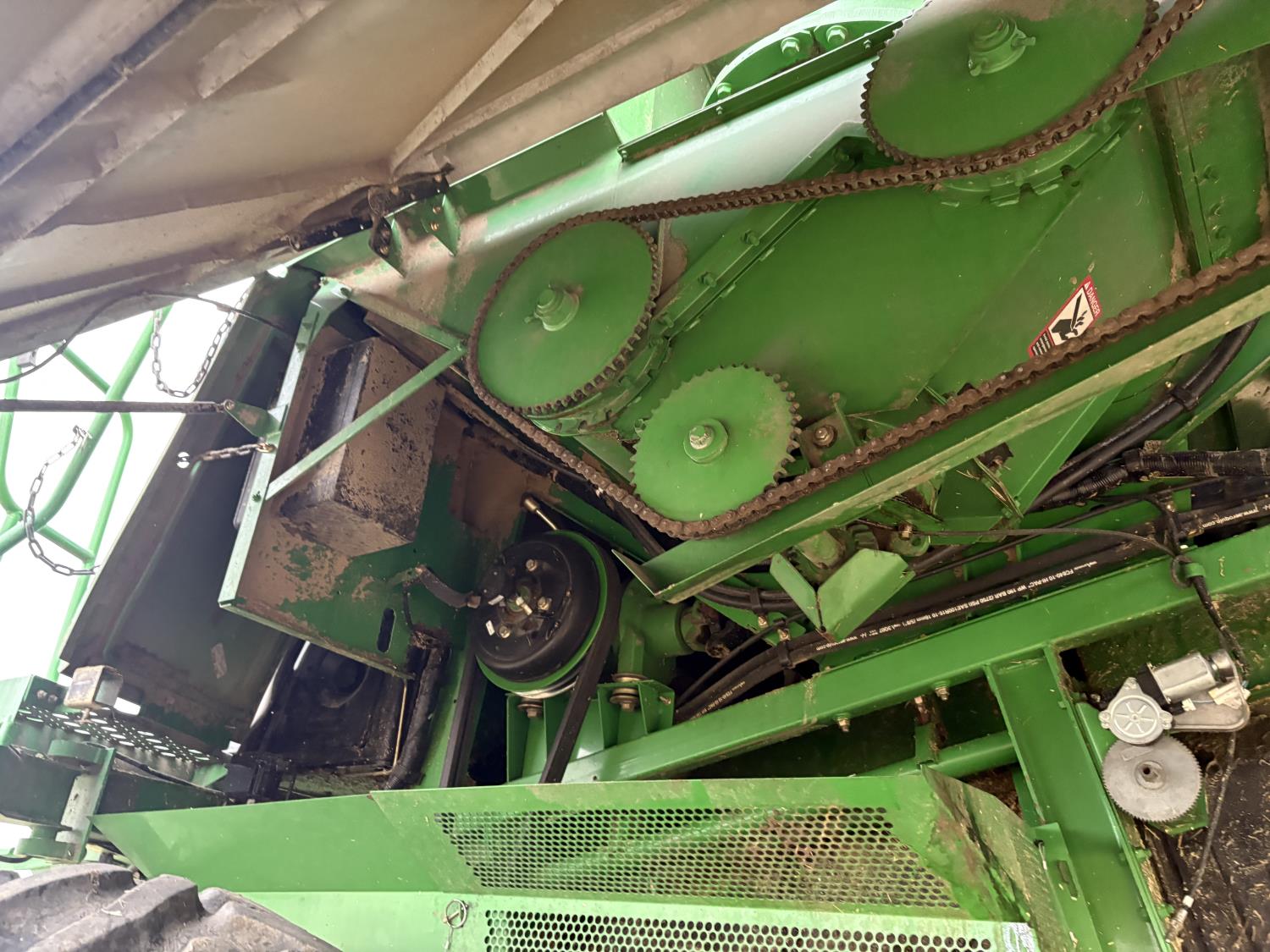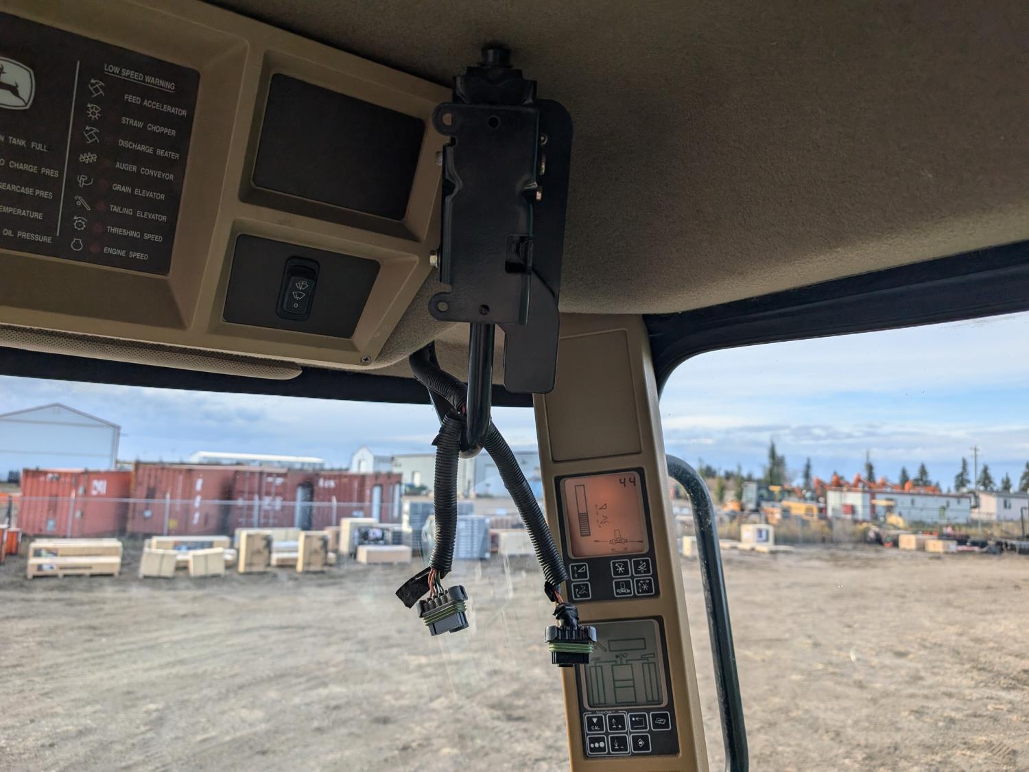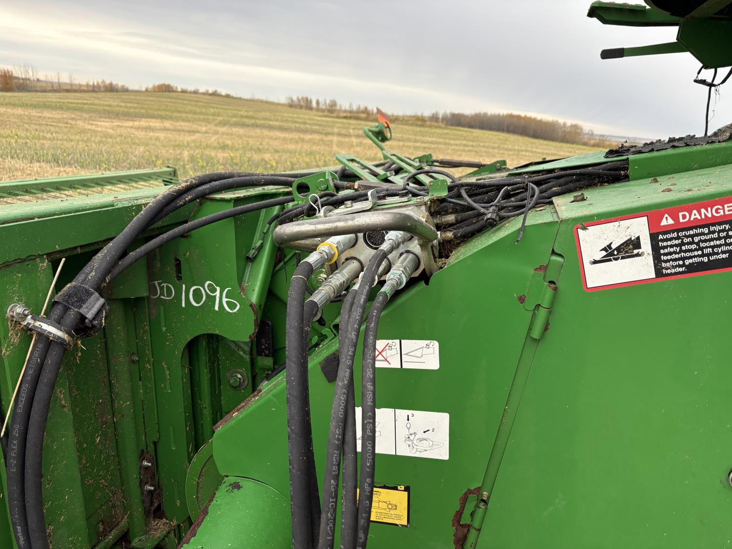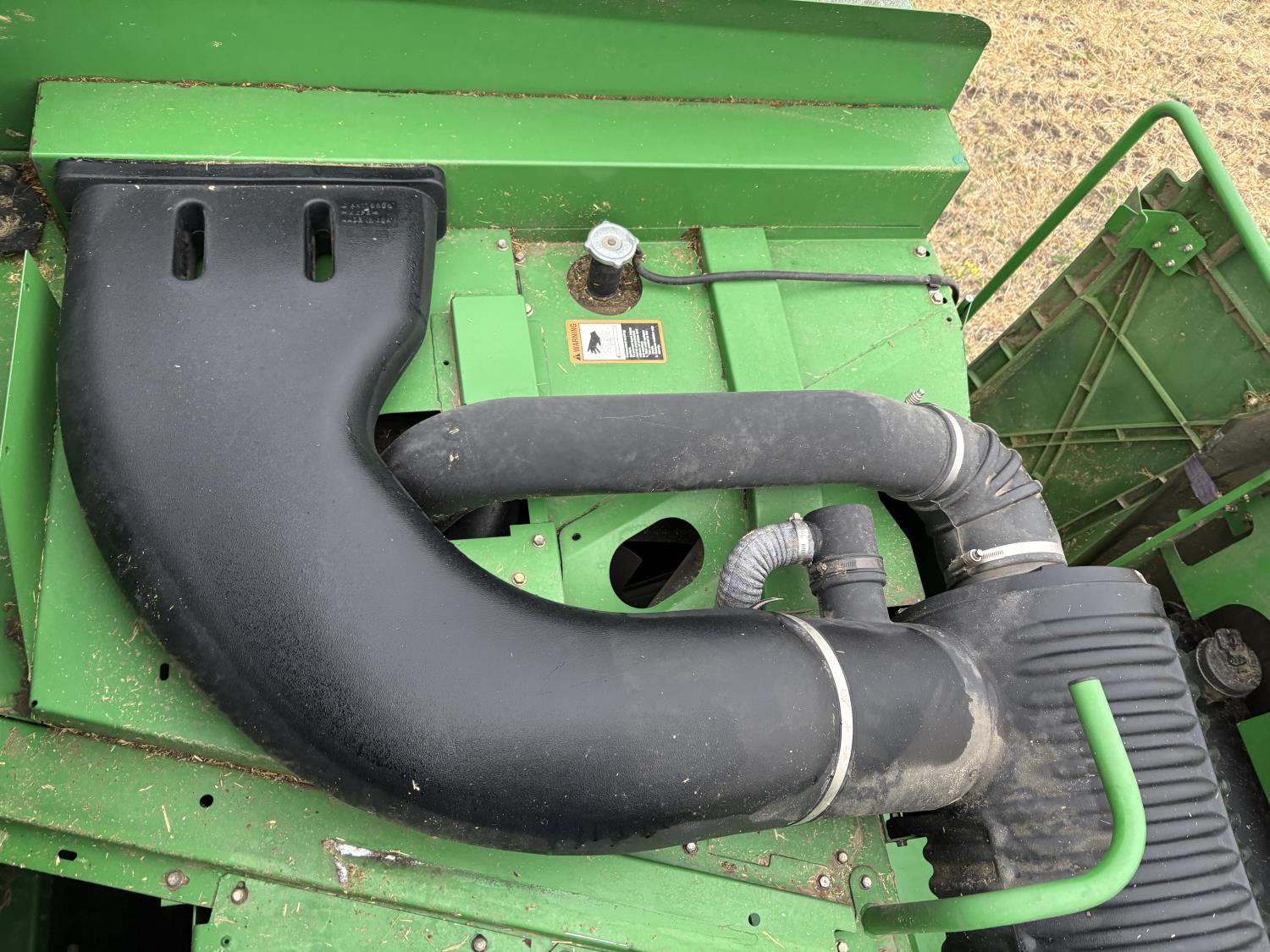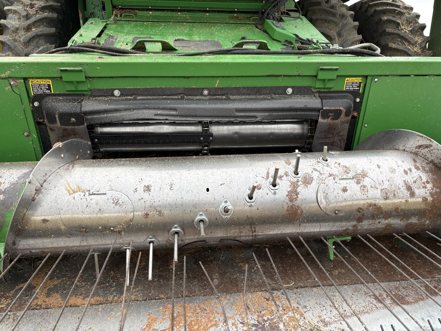 1999 John Deere 914P 14 ft pick-up header, variable speed reel, auto header height, fore & aft, reverser, lateral tilt, rock trap, yield & moisture, chopper, grain tank extensions, A/C, radio, air ride seat, buddy seat, Autotrac universal 300 steering wheel, mount & wiring for monitor, 520/85R42 front tires, duals, 18.4R26 rear tires