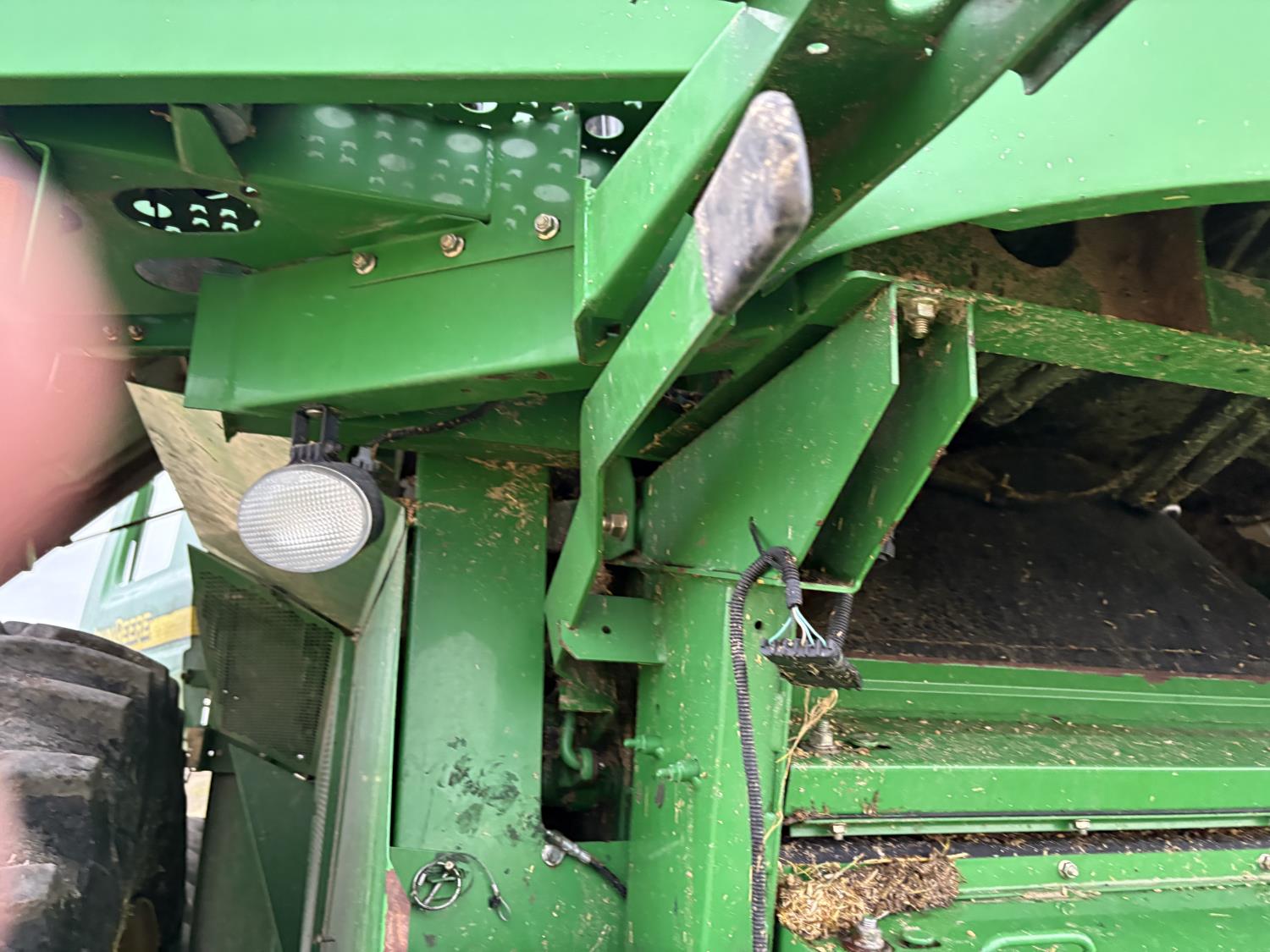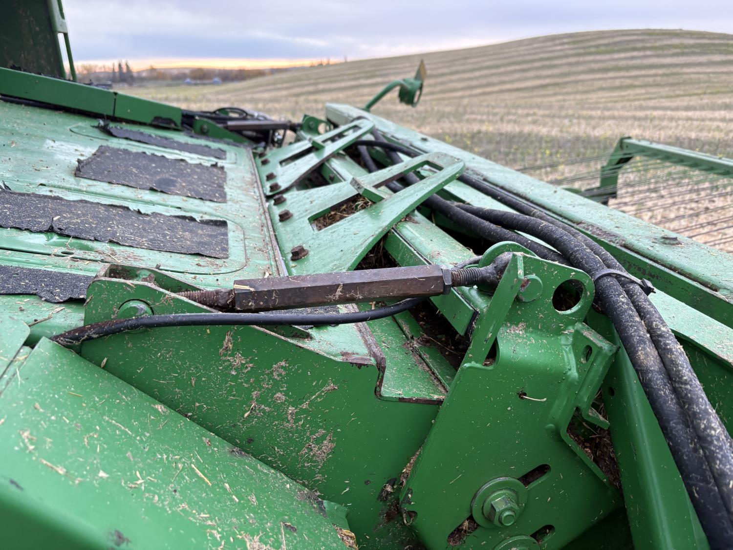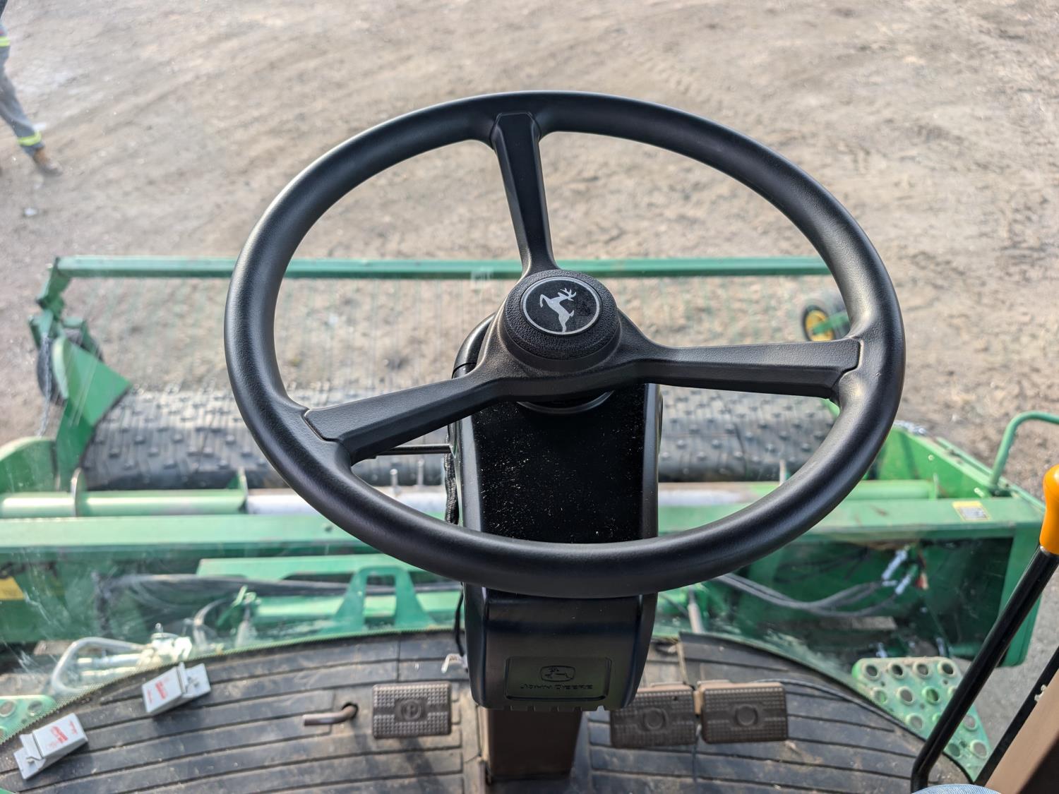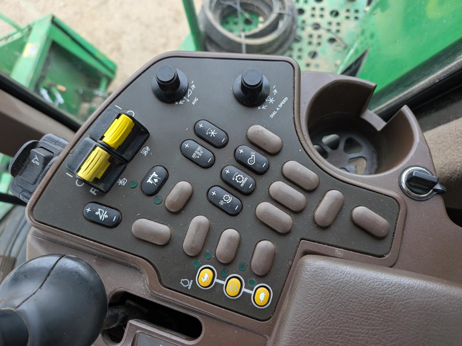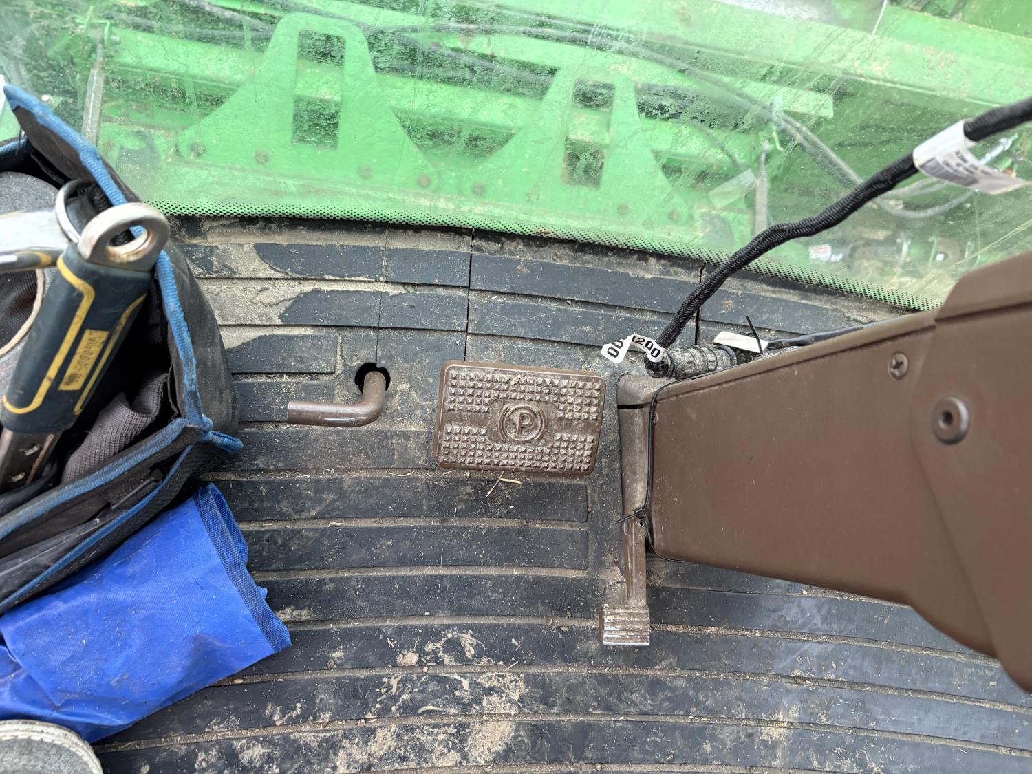 1999 John Deere 914P 14 ft pick-up header, variable speed reel, auto header height, fore & aft, reverser, lateral tilt, rock trap, yield & moisture, chopper, grain tank extensions, A/C, radio, air ride seat, buddy seat, Autotrac universal 300 steering wheel, mount & wiring for monitor, 520/85R42 front tires, duals, 18.4R26 rear tires