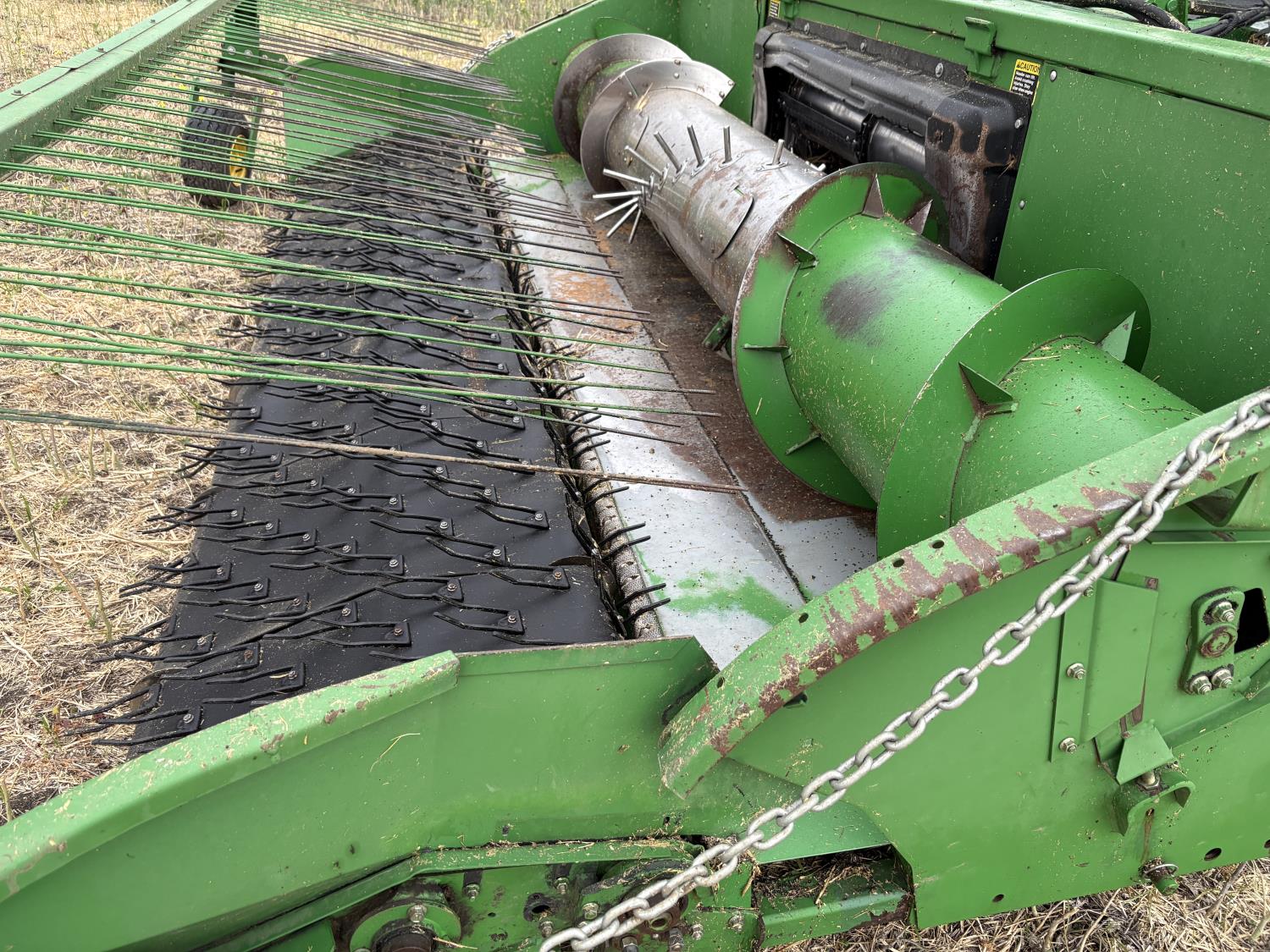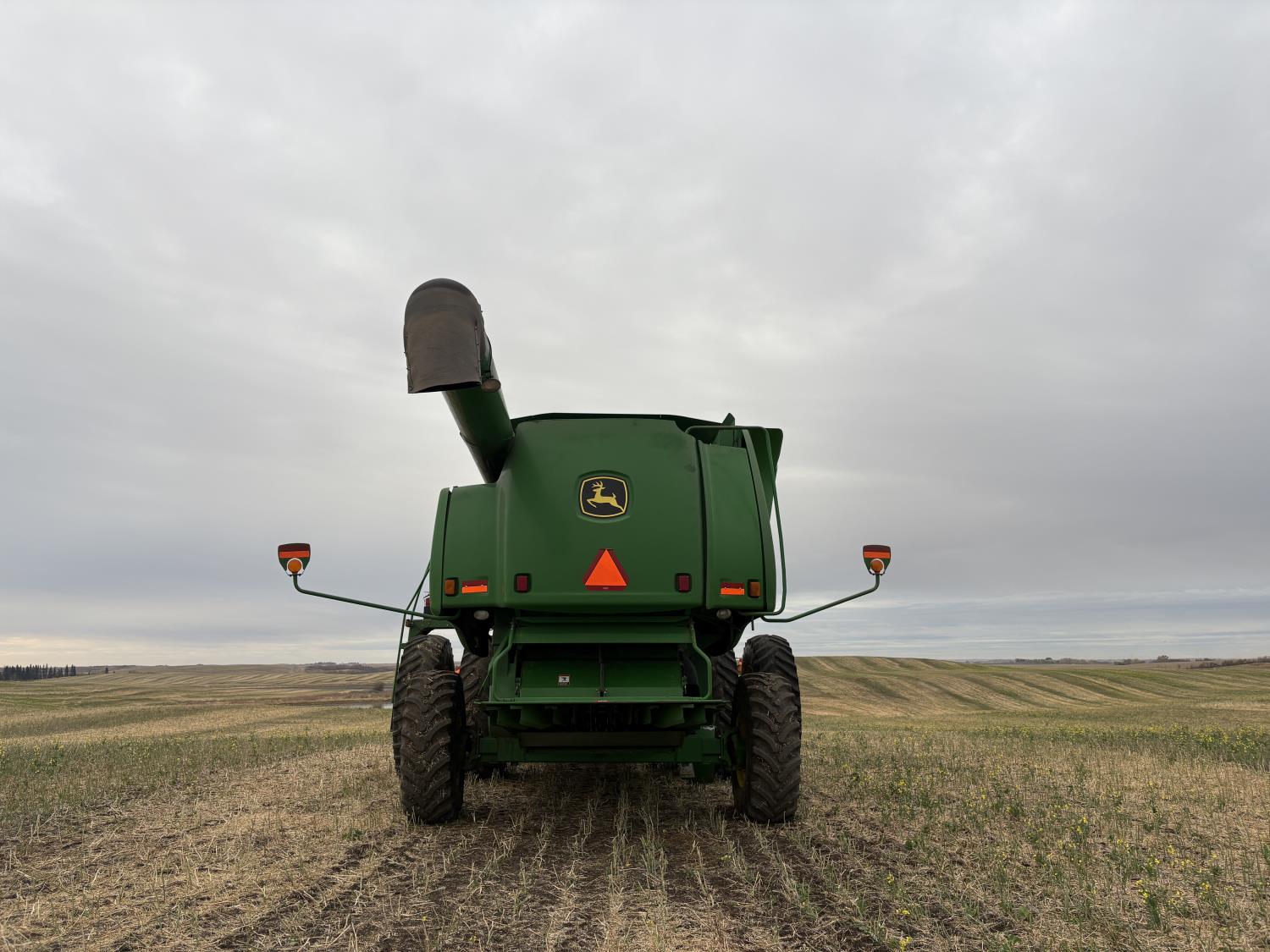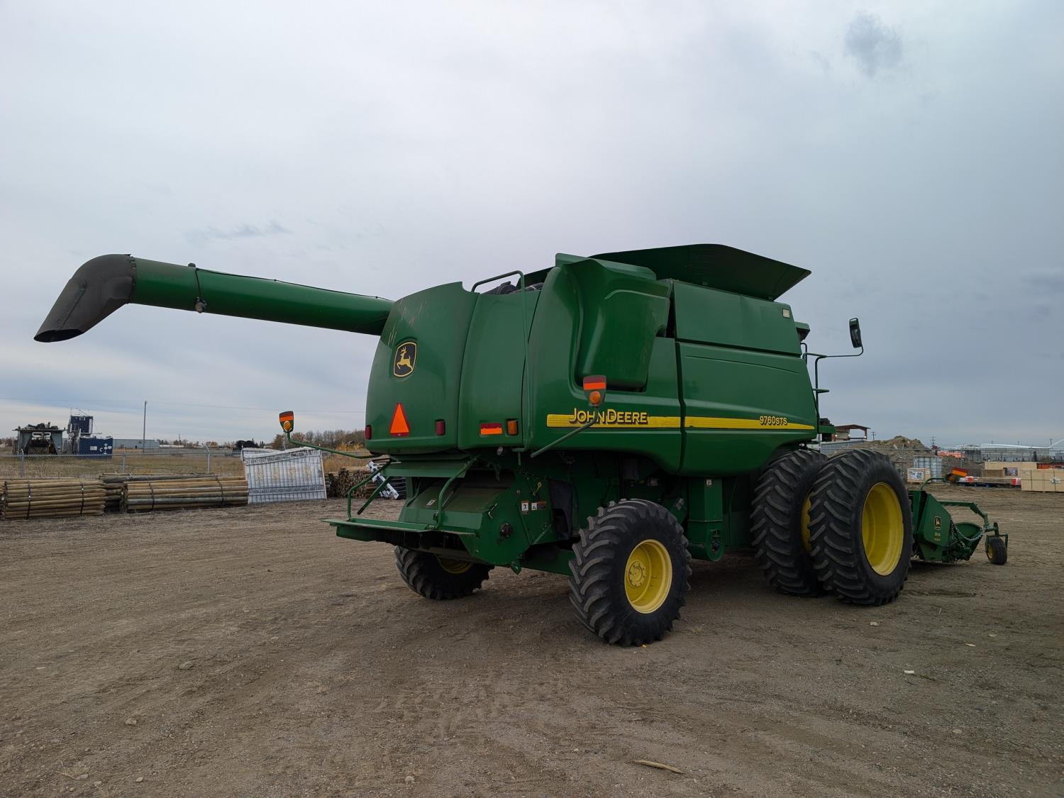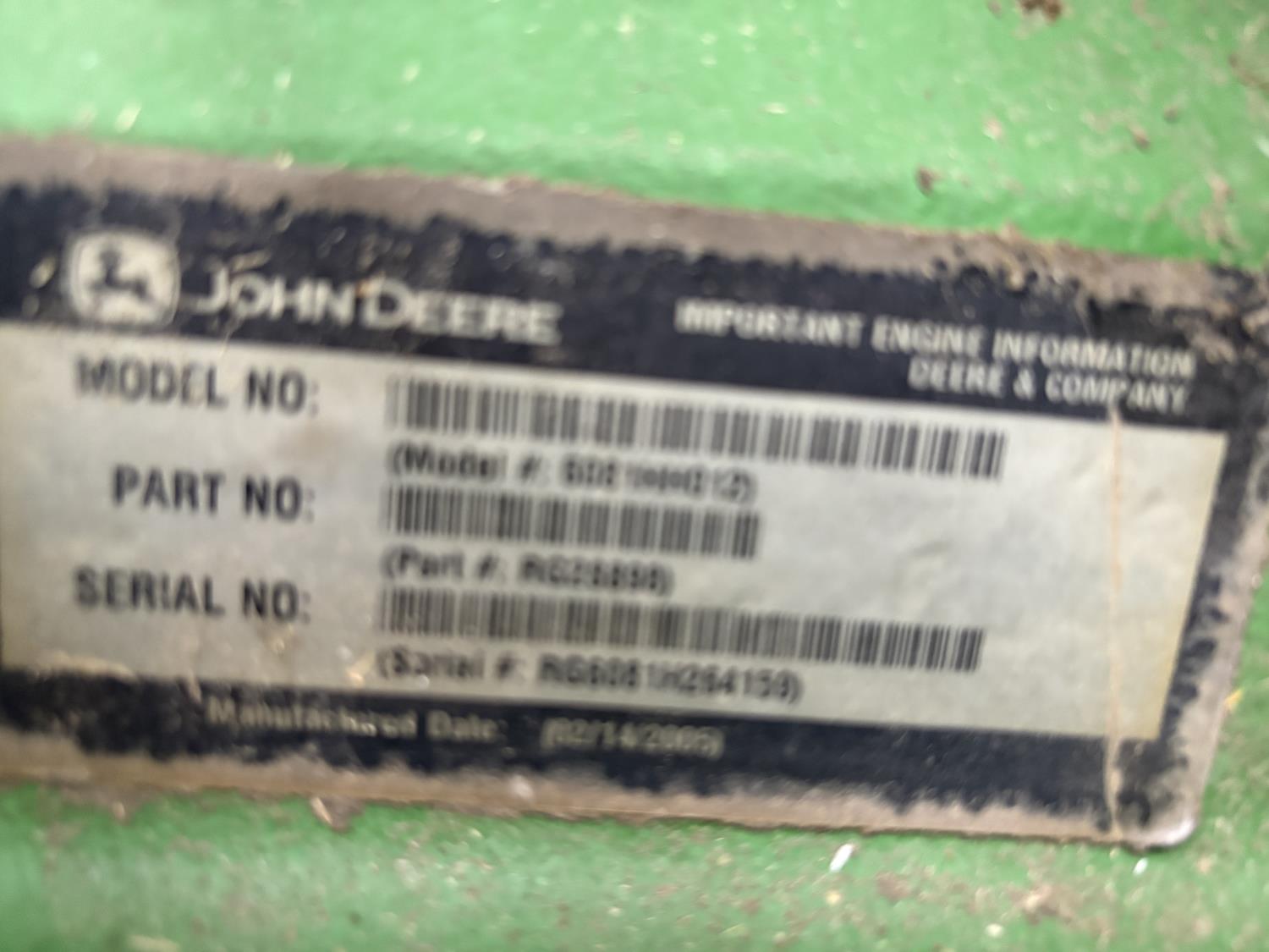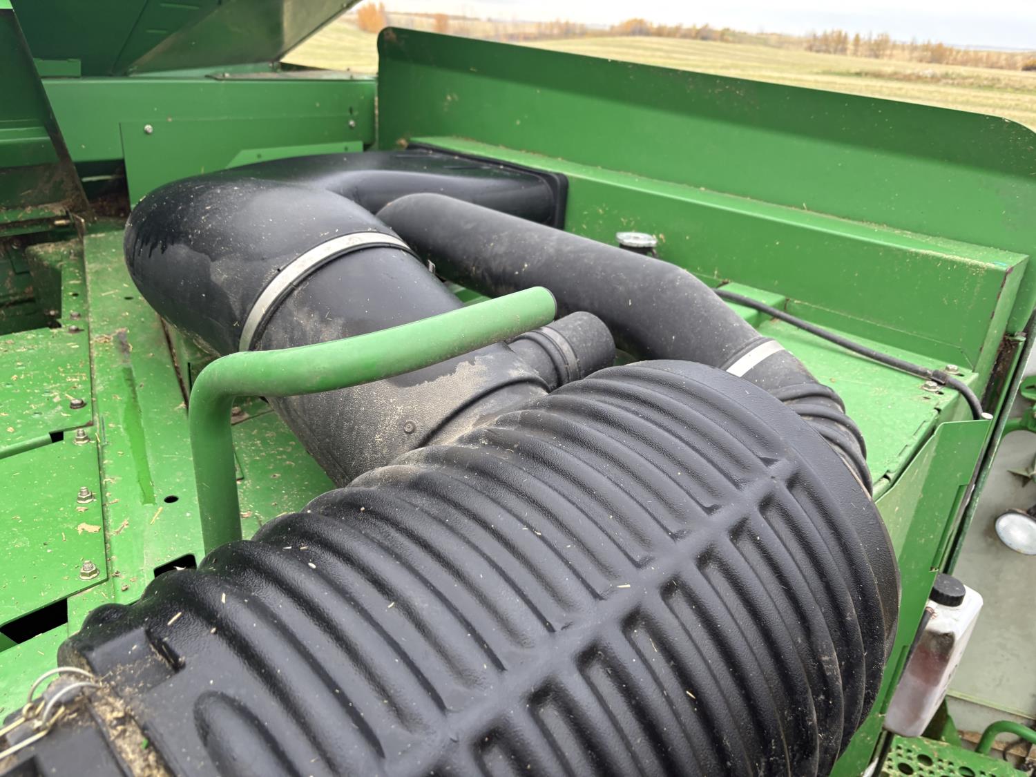 1999 John Deere 914P 14 ft pick-up header, variable speed reel, auto header height, fore & aft, reverser, lateral tilt, rock trap, yield & moisture, chopper, grain tank extensions, A/C, radio, air ride seat, buddy seat, Autotrac universal 300 steering wheel, mount & wiring for monitor, 520/85R42 front tires, duals, 18.4R26 rear tires