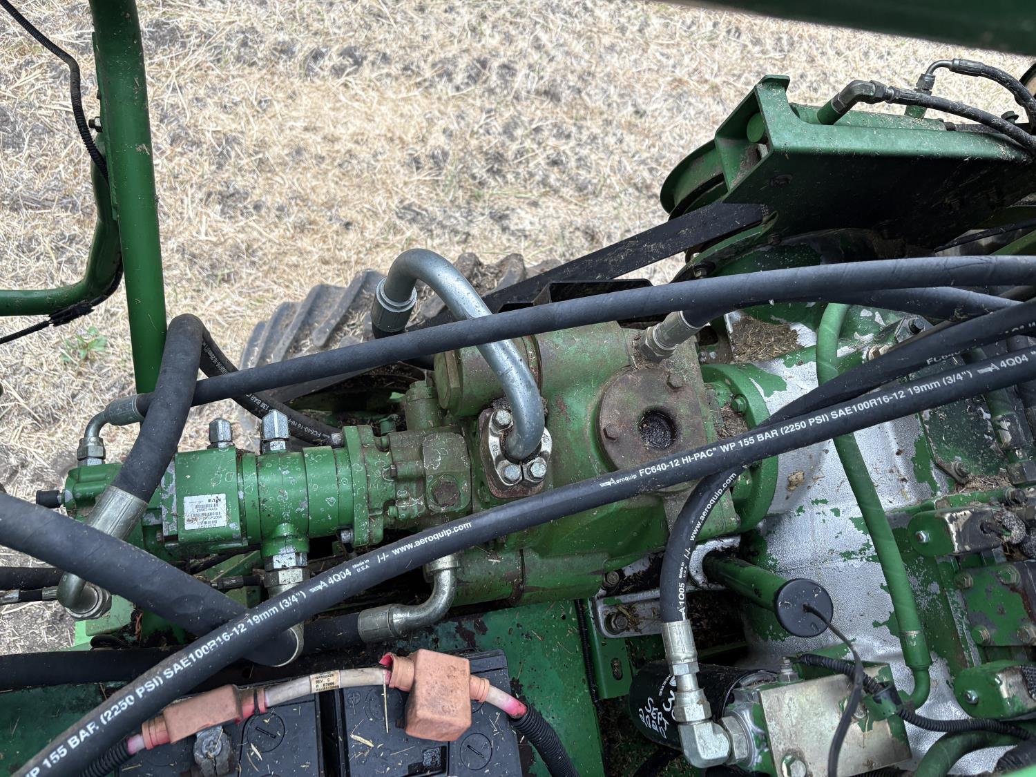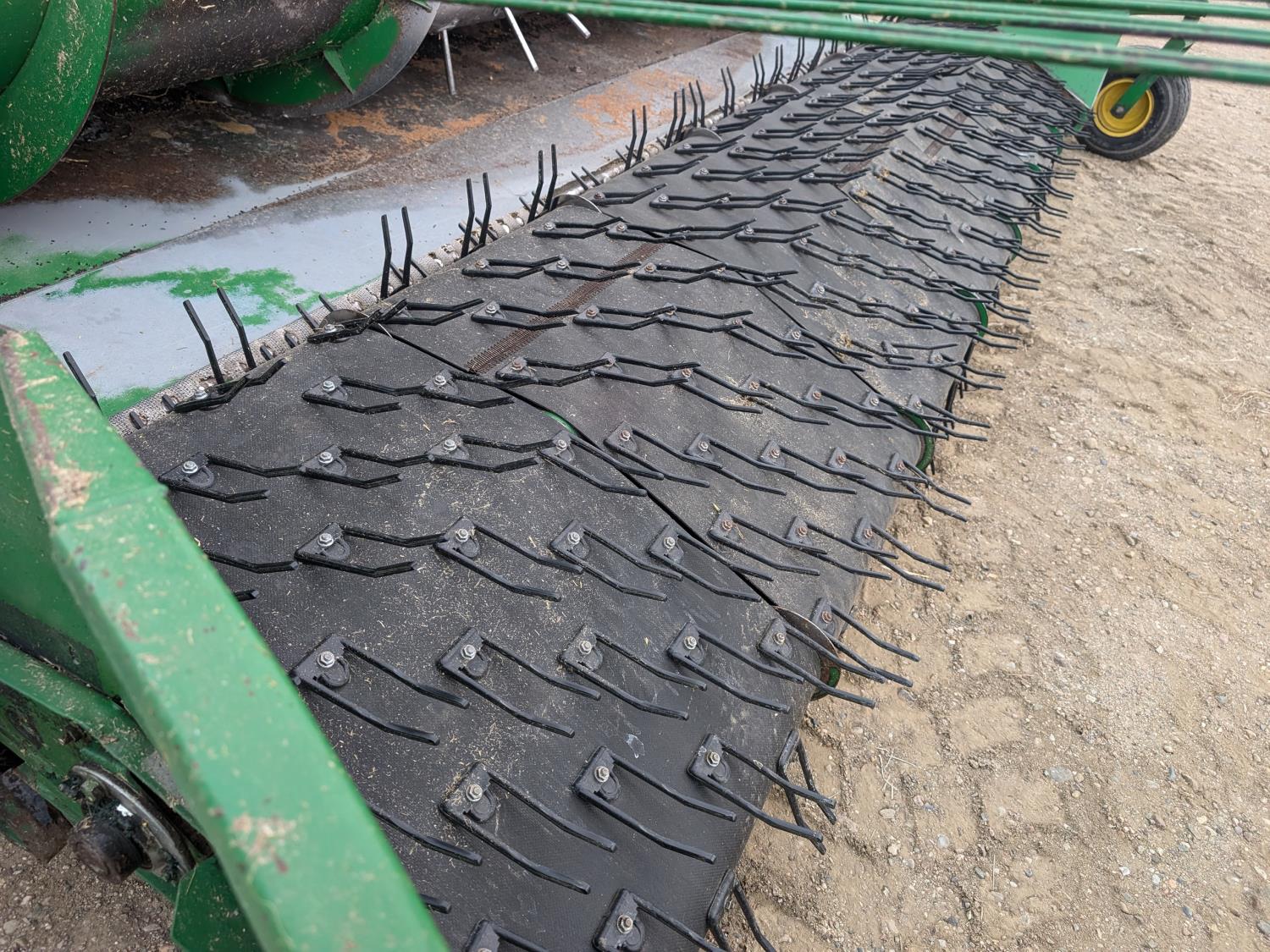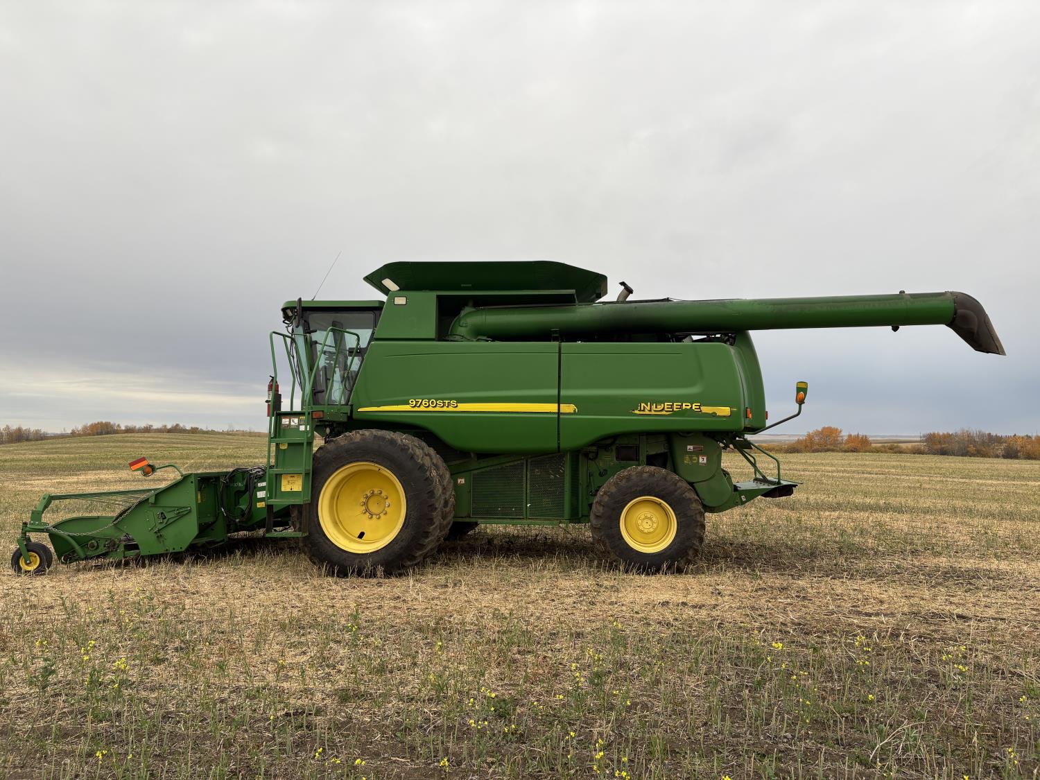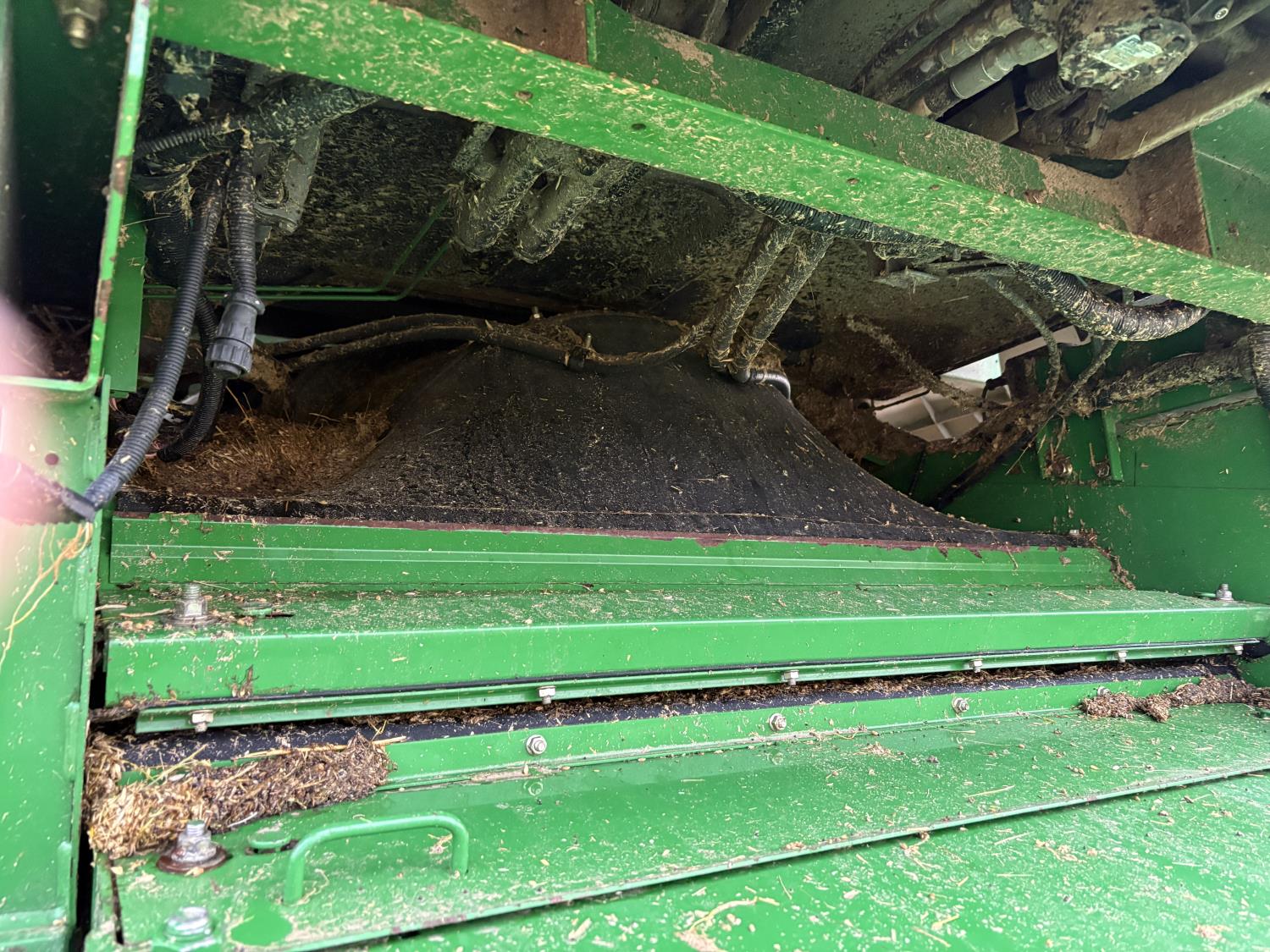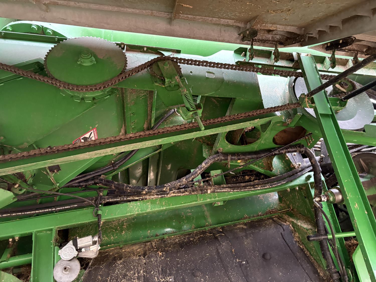 1999 John Deere 914P 14 ft pick-up header, variable speed reel, auto header height, fore & aft, reverser, lateral tilt, rock trap, yield & moisture, chopper, grain tank extensions, A/C, radio, air ride seat, buddy seat, Autotrac universal 300 steering wheel, mount & wiring for monitor, 520/85R42 front tires, duals, 18.4R26 rear tires