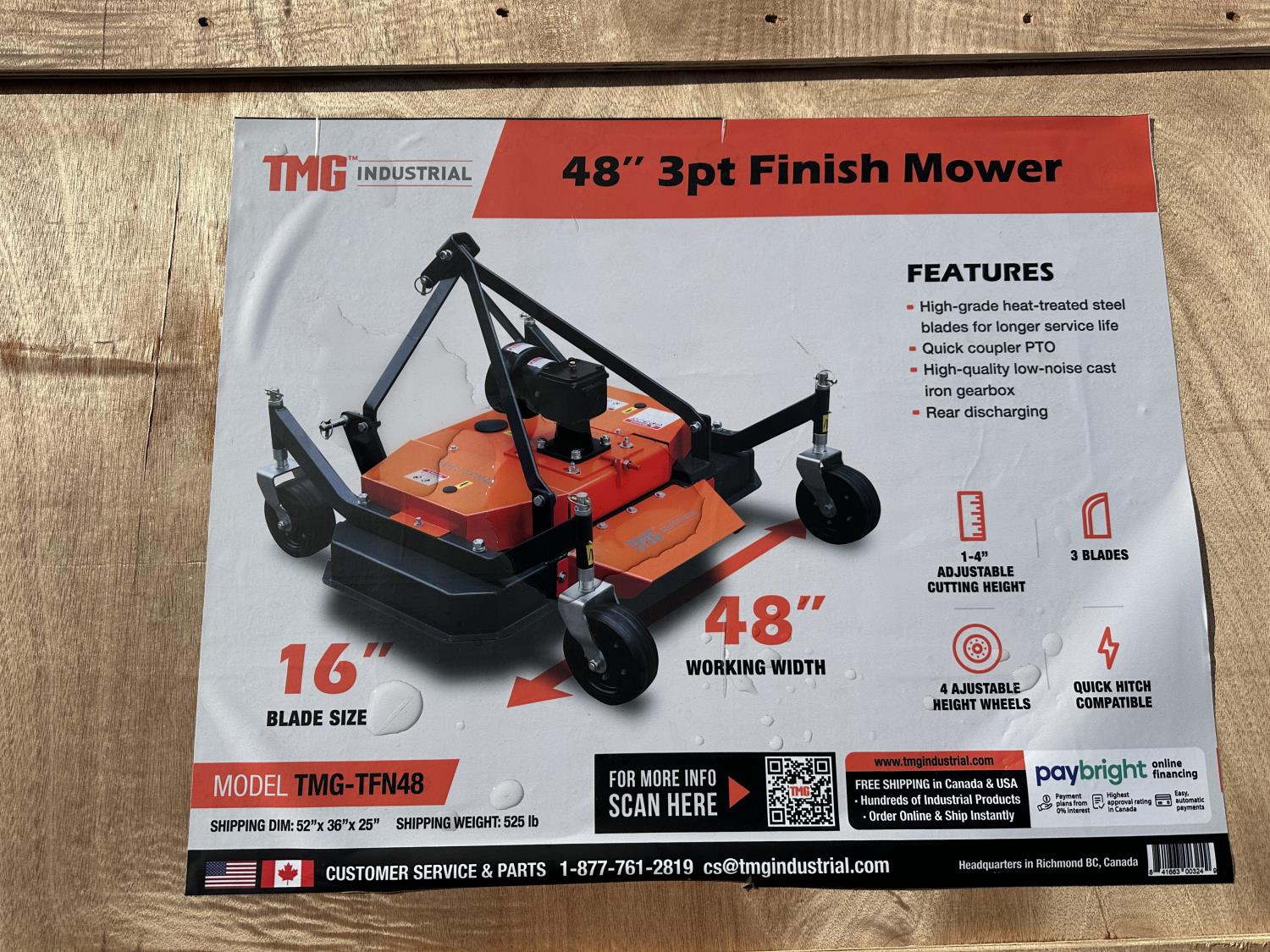 42 TMG Industrial TMG-TFN48 Finish Mower 3 Point 48 Inch (Unused)