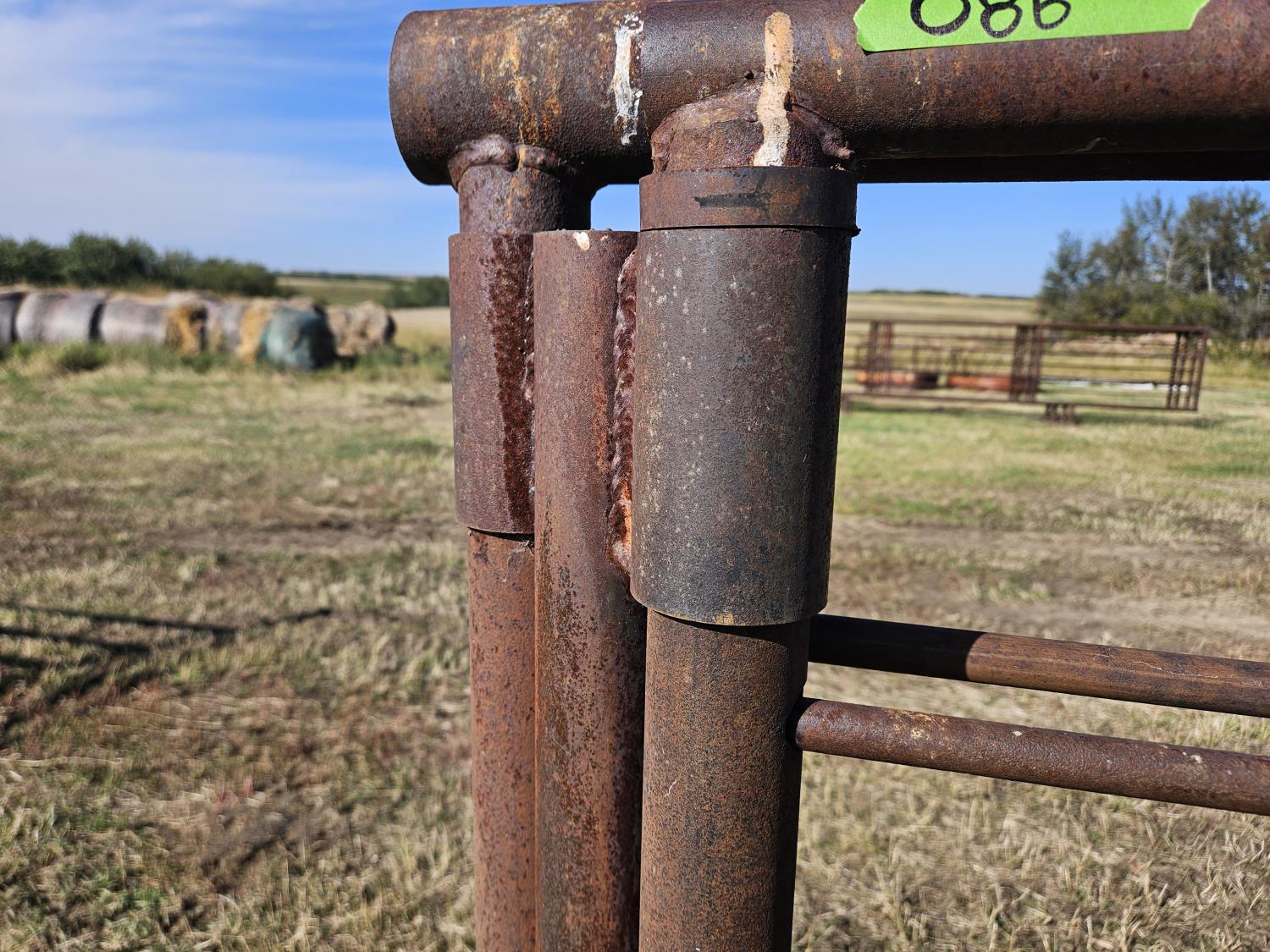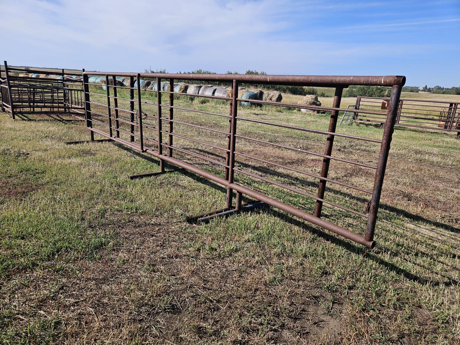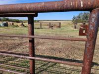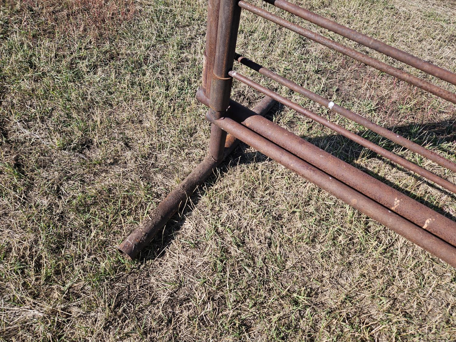 (1) 15 ft freestanding panel, (1) 24 ft freestanding panel w/10 ft gate, 2-7/8 and 2-3/8 pipe construction, 5 bar sucker rod rails