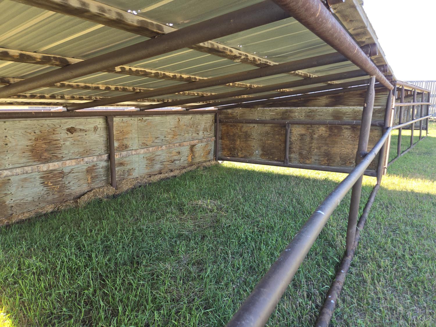 139 inch wide, steel pipe construction wooden exterior, tin roof
