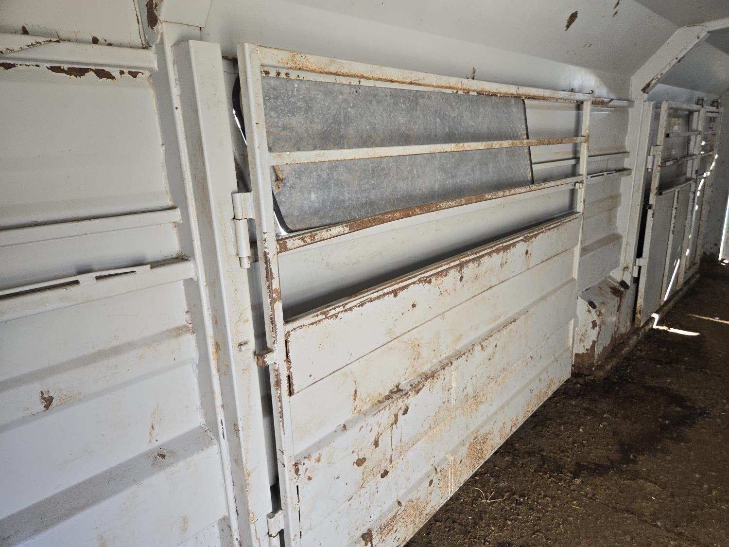 89 inch inside, 81 inch inside height, left hand 30 inch man door, rubber mats, G/N storage, torsion axles, (2) divider gates with doors, rear full swing with sliding door, 235/85R16 tires
