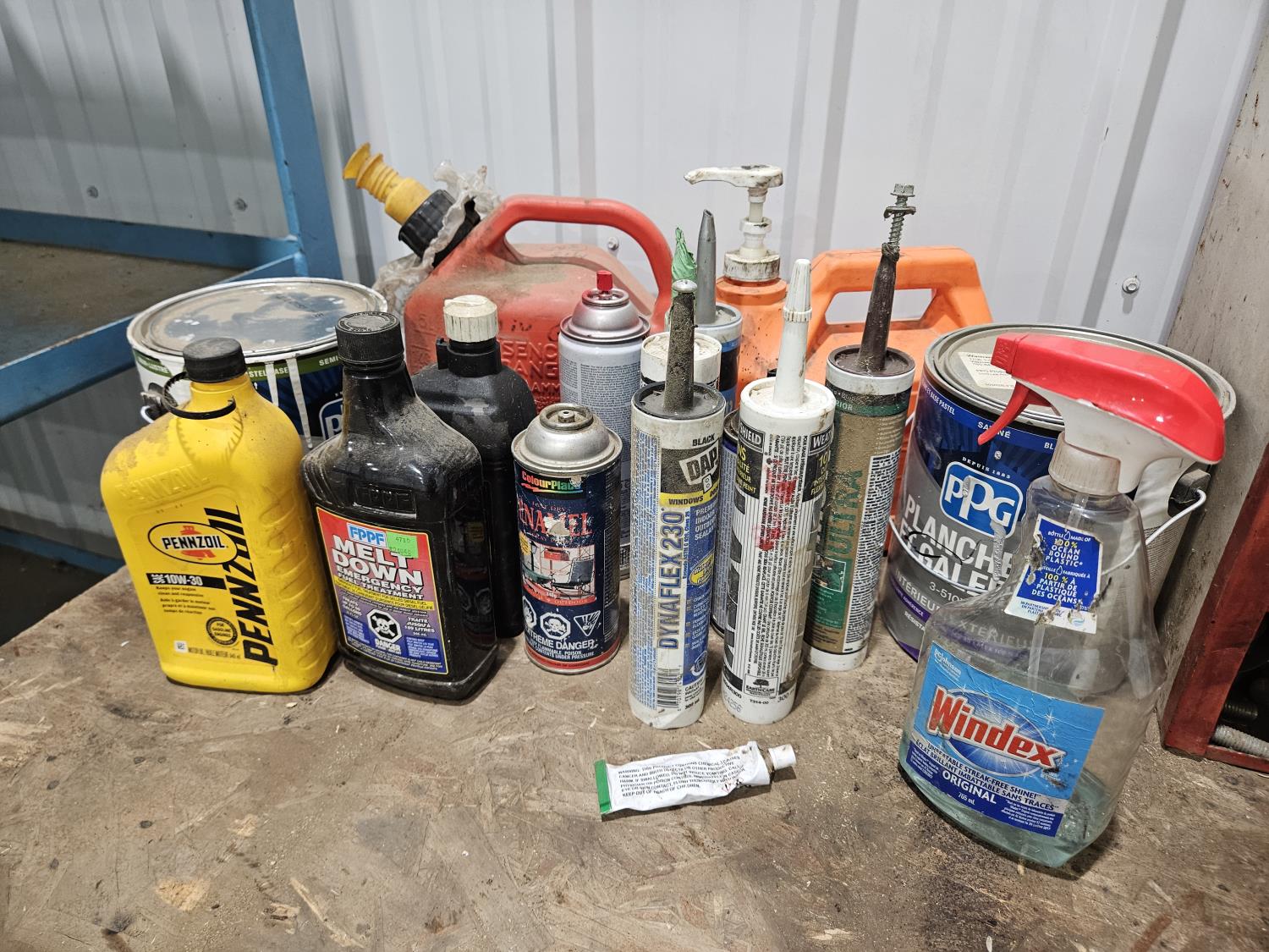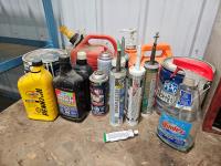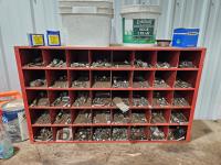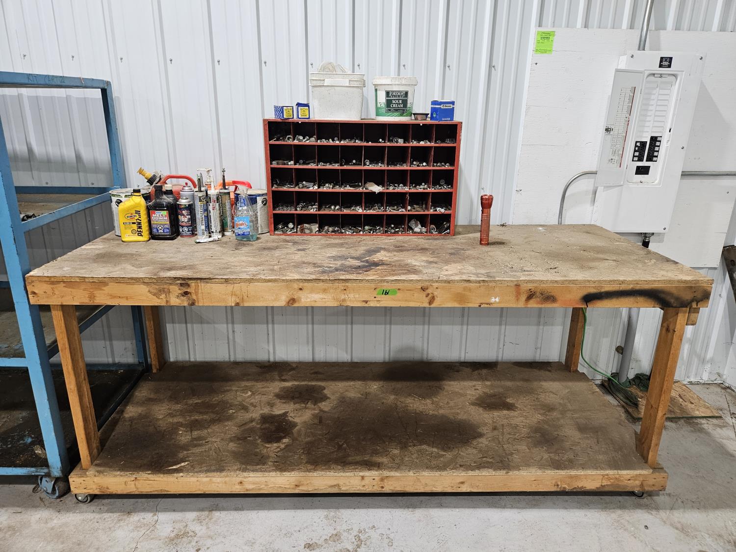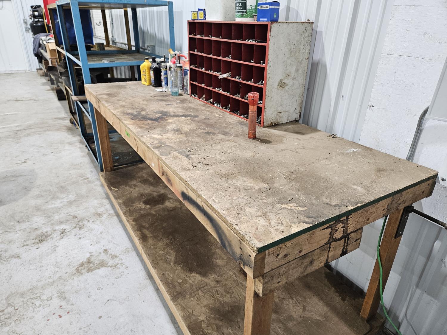70 8 Ft X 3 Ft Shop Bench, Bolt Bin and Contents, Shop Fluids