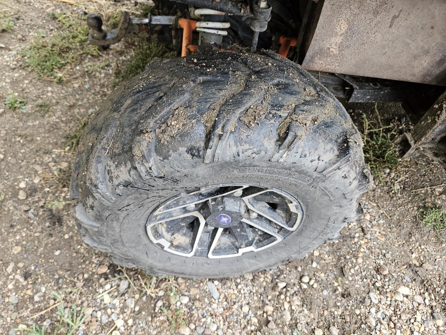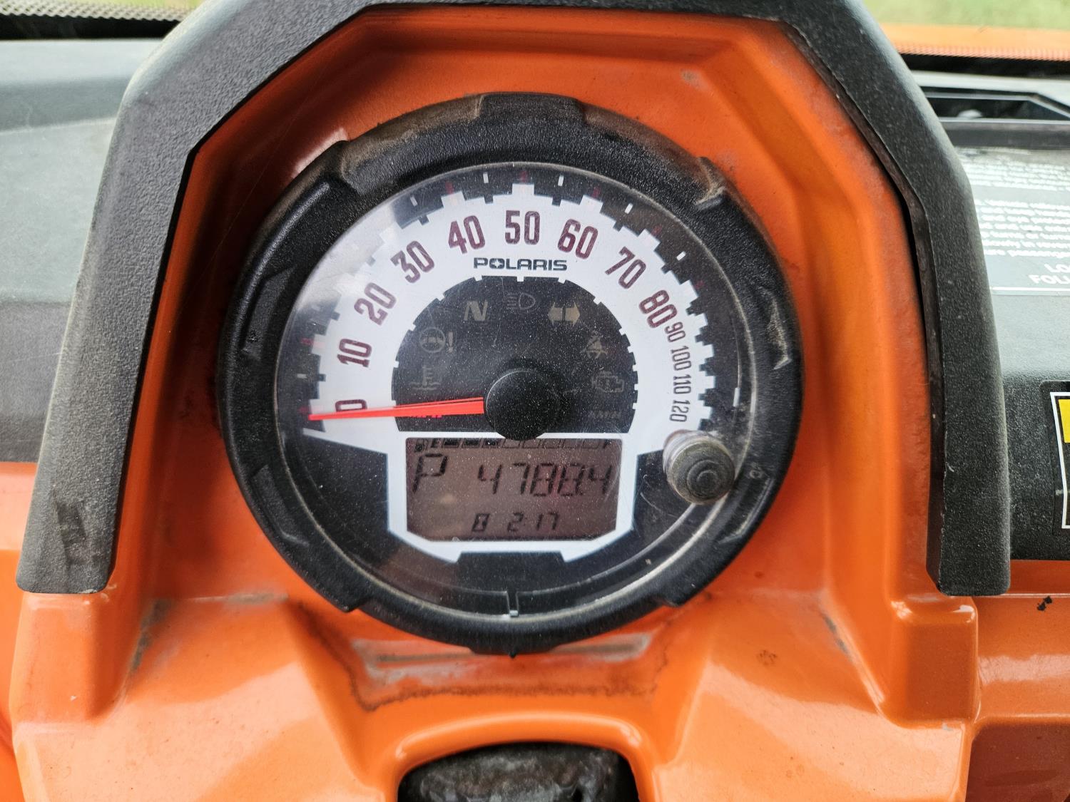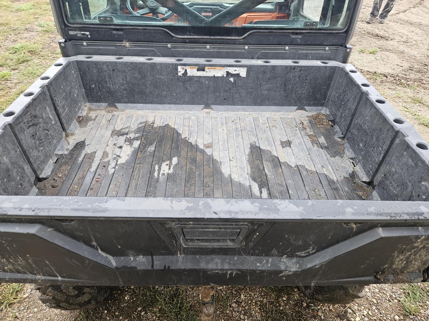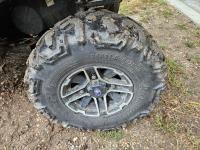 900 cc fuel injected engine, automatic transmission, Hi/Lo range, reverse, enclosed cab, A/C, heater, windshield, power steering, front winch, manual dump box, receiver hitch, 26X9X12 front tires, 12X11X12 rear tires