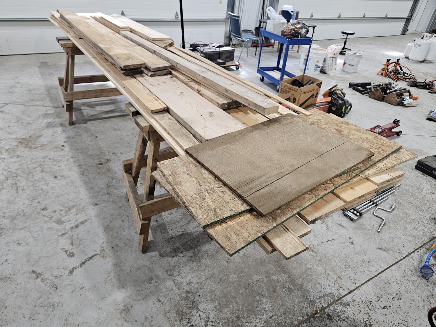 18 Qty Misc Lumber and Saw Horses