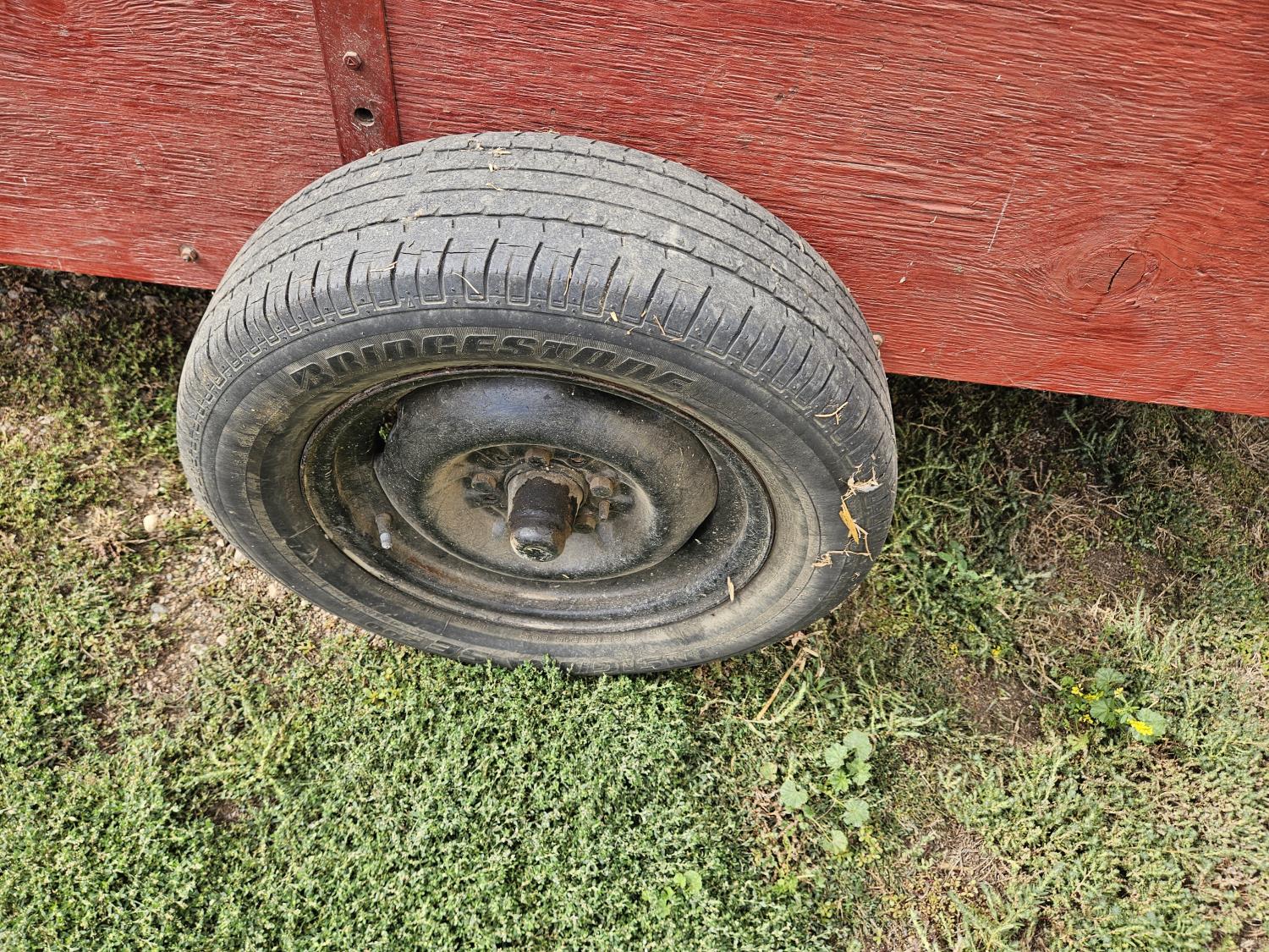 45 inch wide, wood sides, drop pin hitch, 195/65R15 tires, off road use only