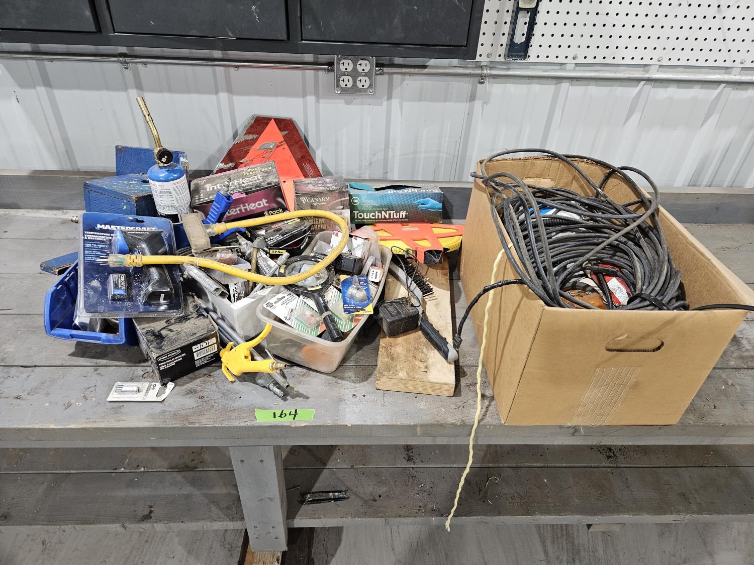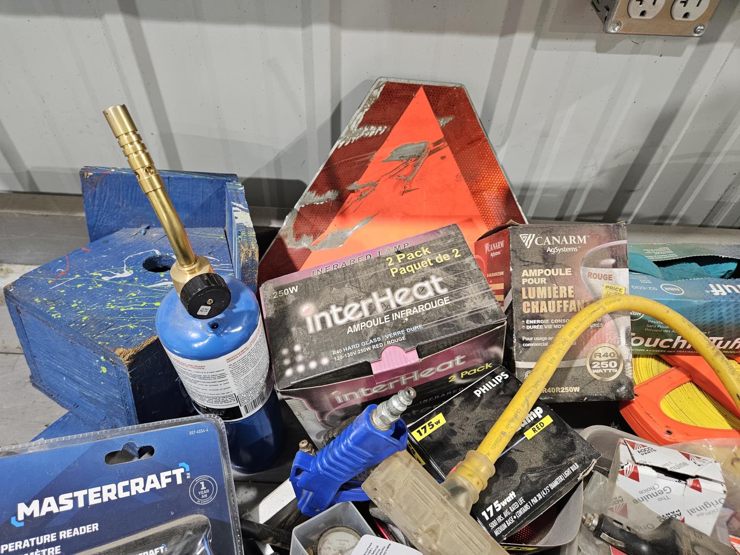 73 Shop Suppies, Temp Gun, Light Bulbs, Measuring Tape, Trailer Lights
