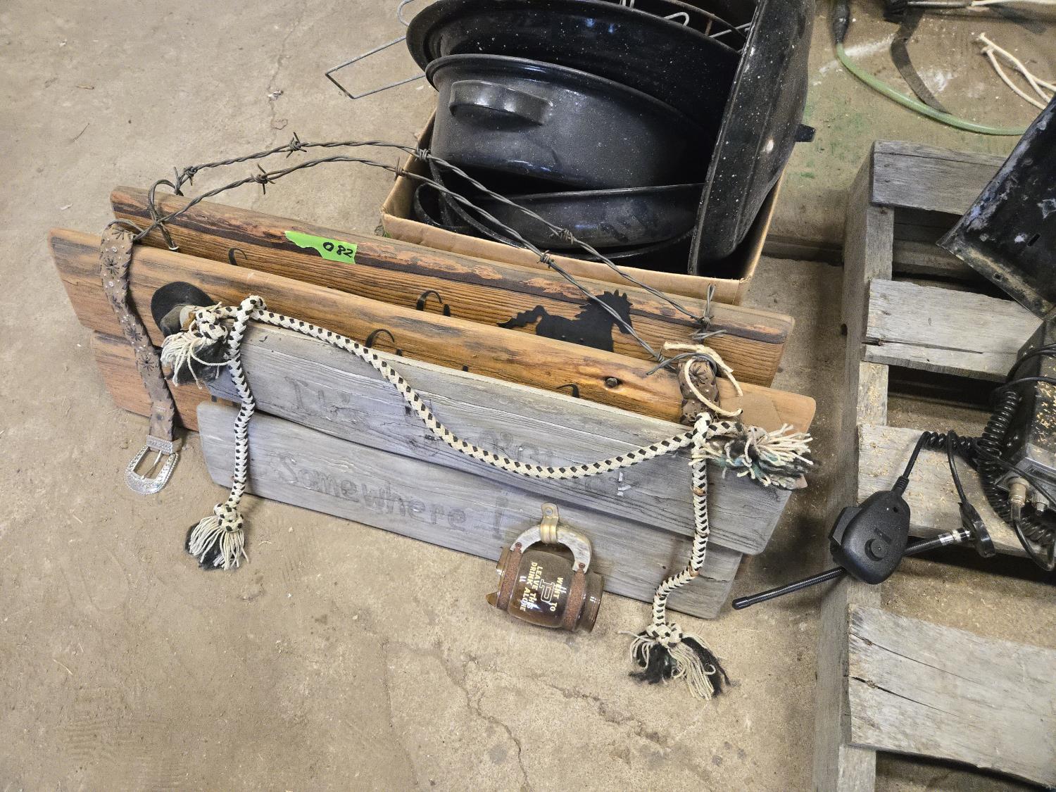 68 (3) Vintage Wooden Signs & (3) Canning Pots