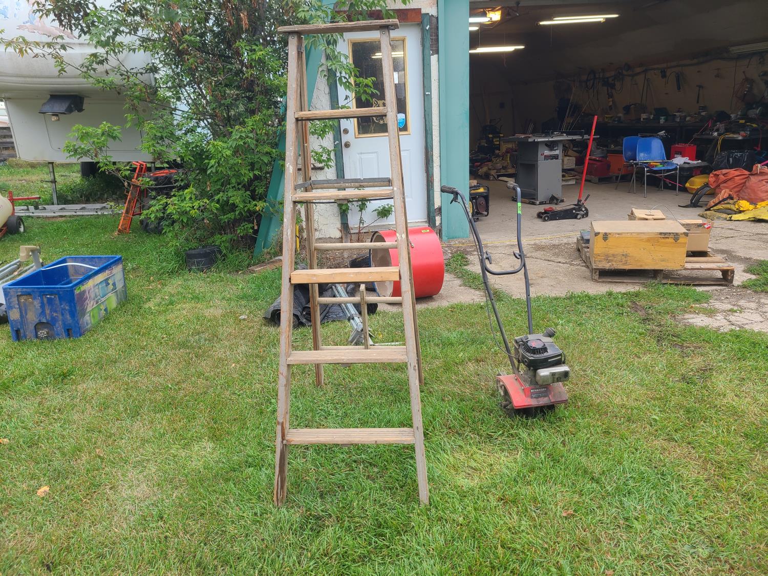 80 Dynamark 10 Inch Rototiller & Wooden Ladder (Inoperable)