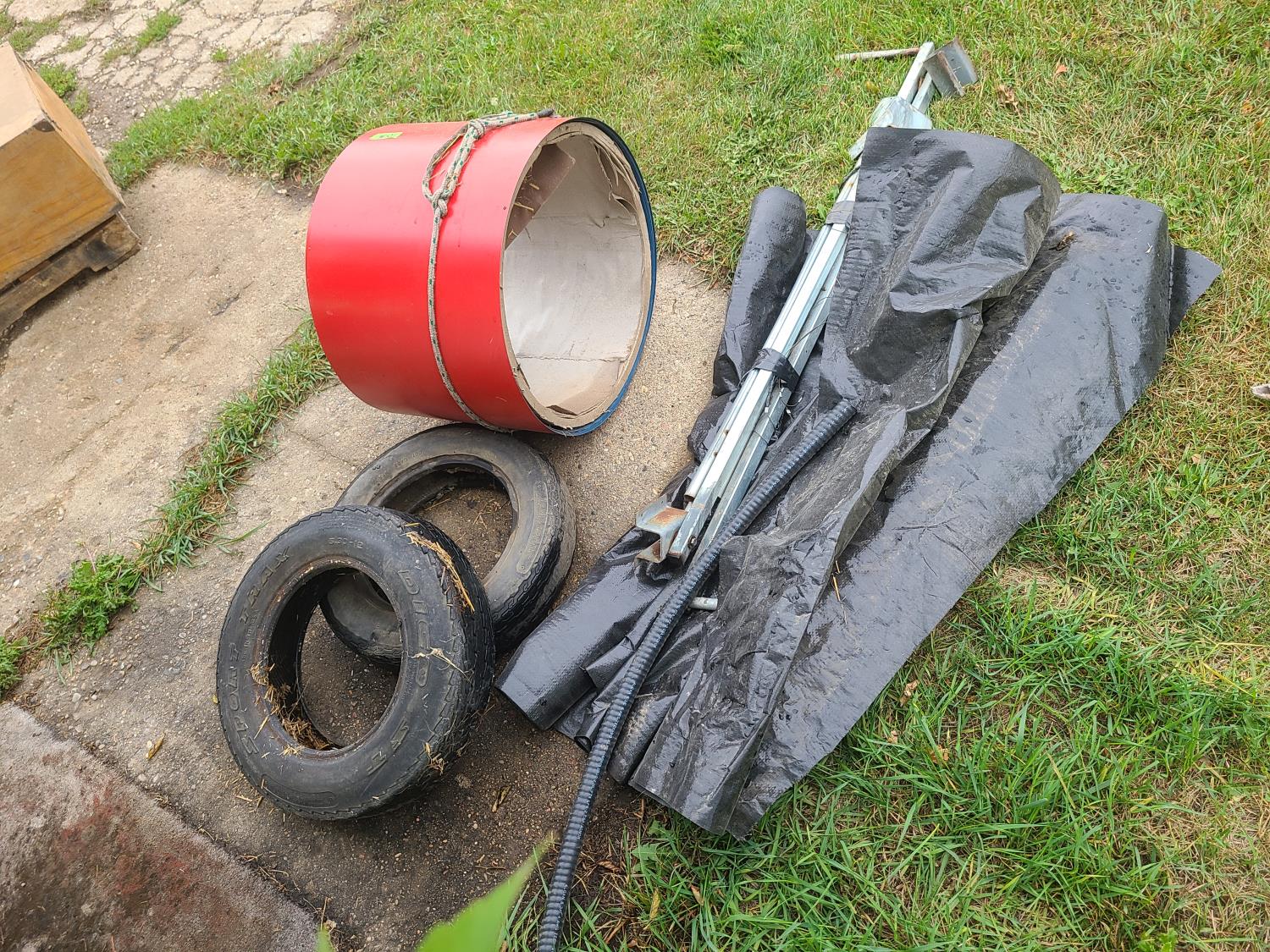 21 Roll of Tin, Qty of Weather Wrap & (2) Tires