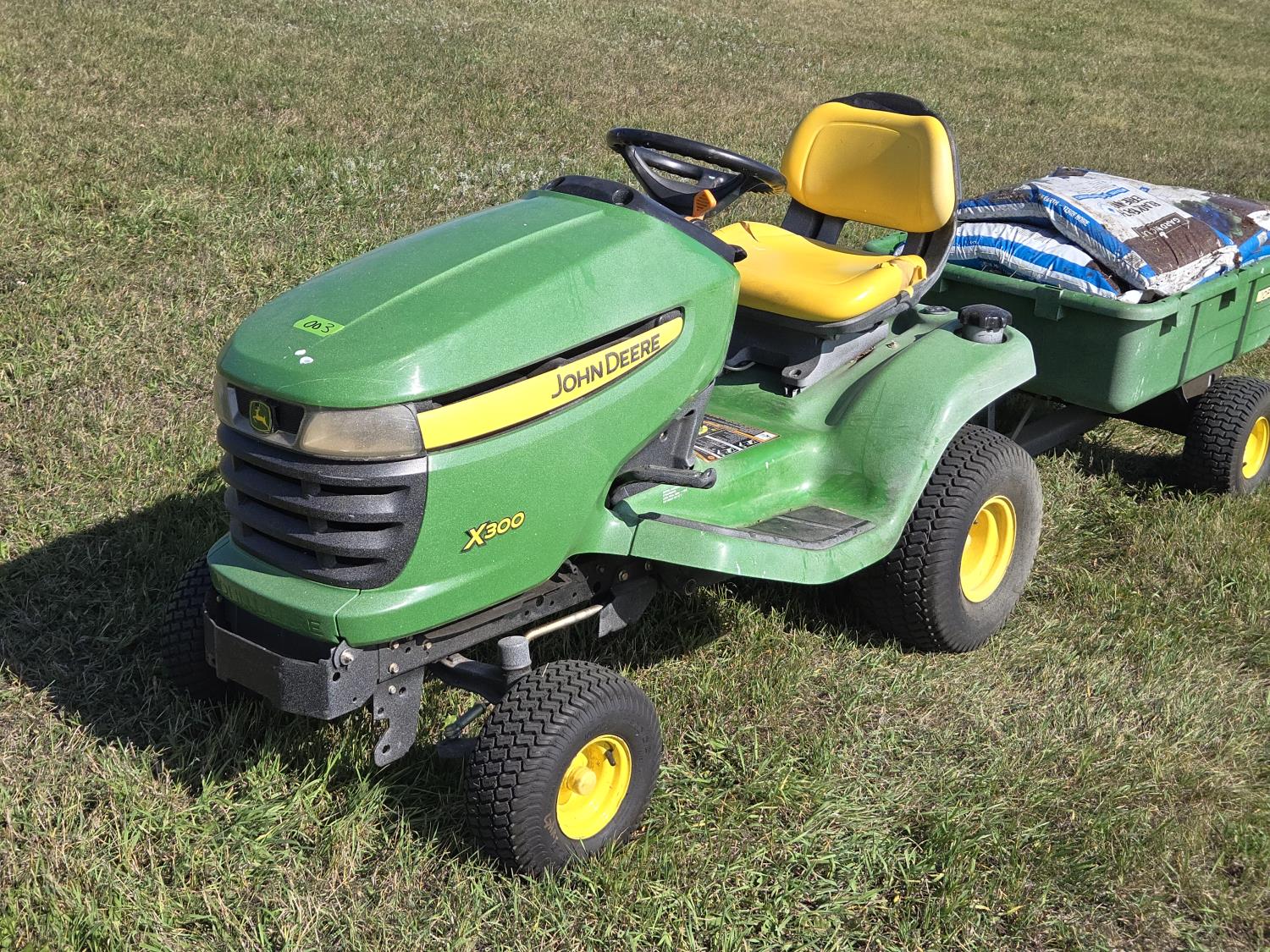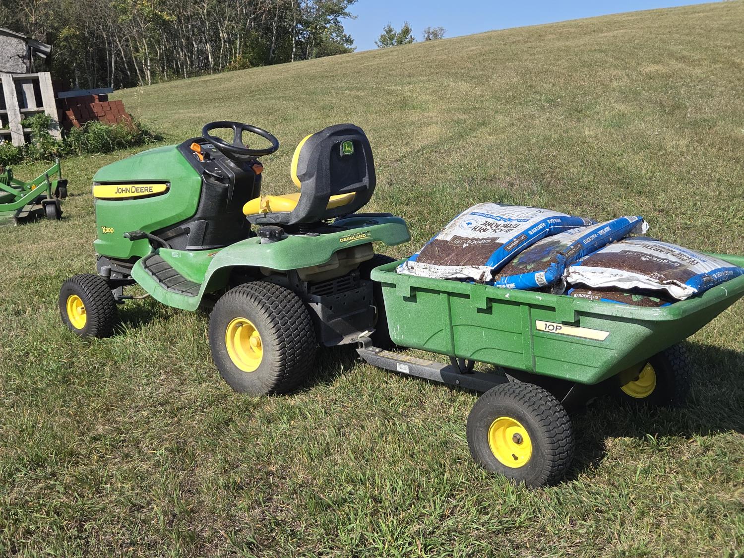 Kawasaki 17 HP twin cylinder engine, hydro transmission, John Deere 10P garden trailer with 12 bags of black dirt, NOTE: this tractor does not have a mower deck