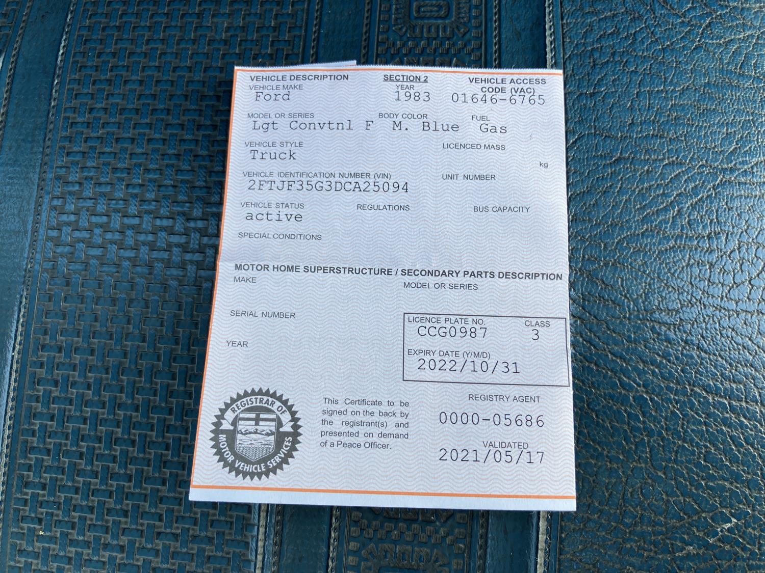 Copy of registration on hand.