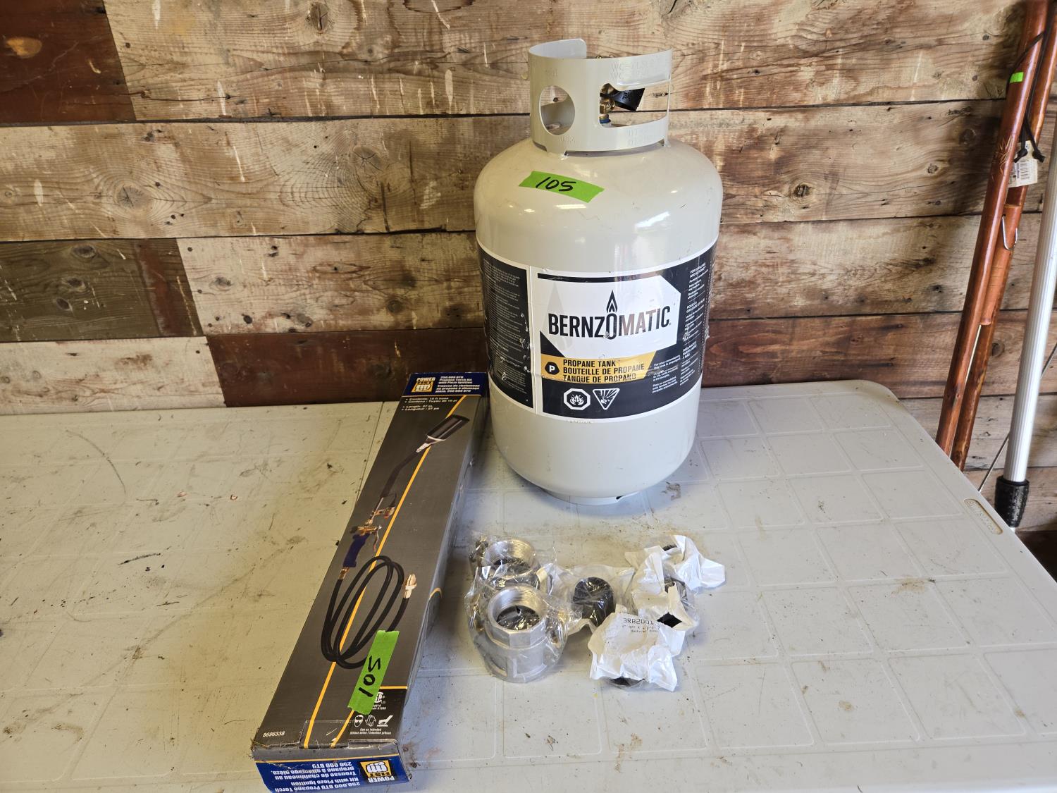 253 Powerfist Propane Tiger Torch, New 30 lb Propane Bottle (Full) (2) Camlocks & Misc Fittings