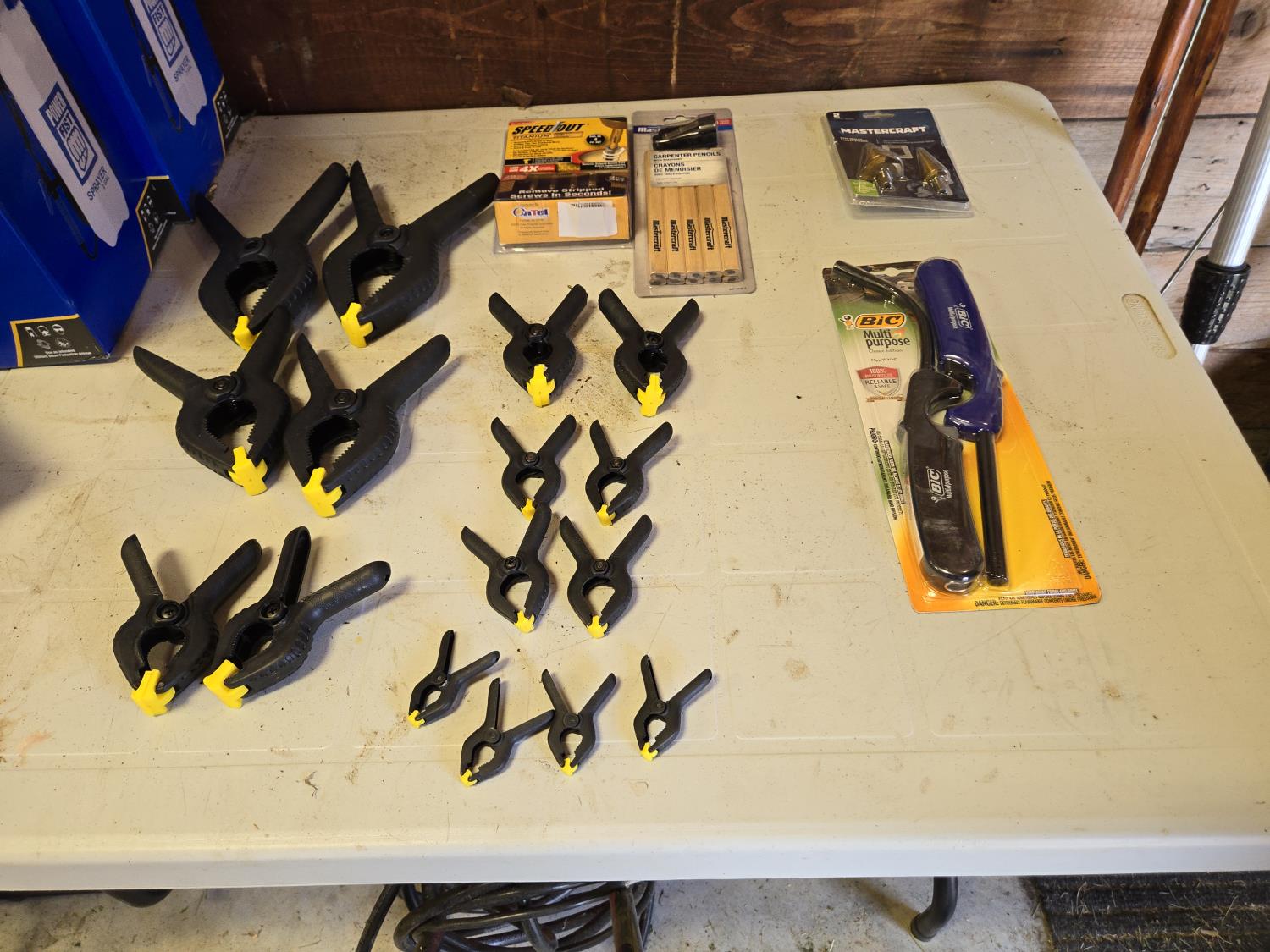 254 Qty of Crocodile Clamps, (2) Mastercraft Step Drill Bits, Carpenters Pencils, (2) Lighters, Pack of (Unused)