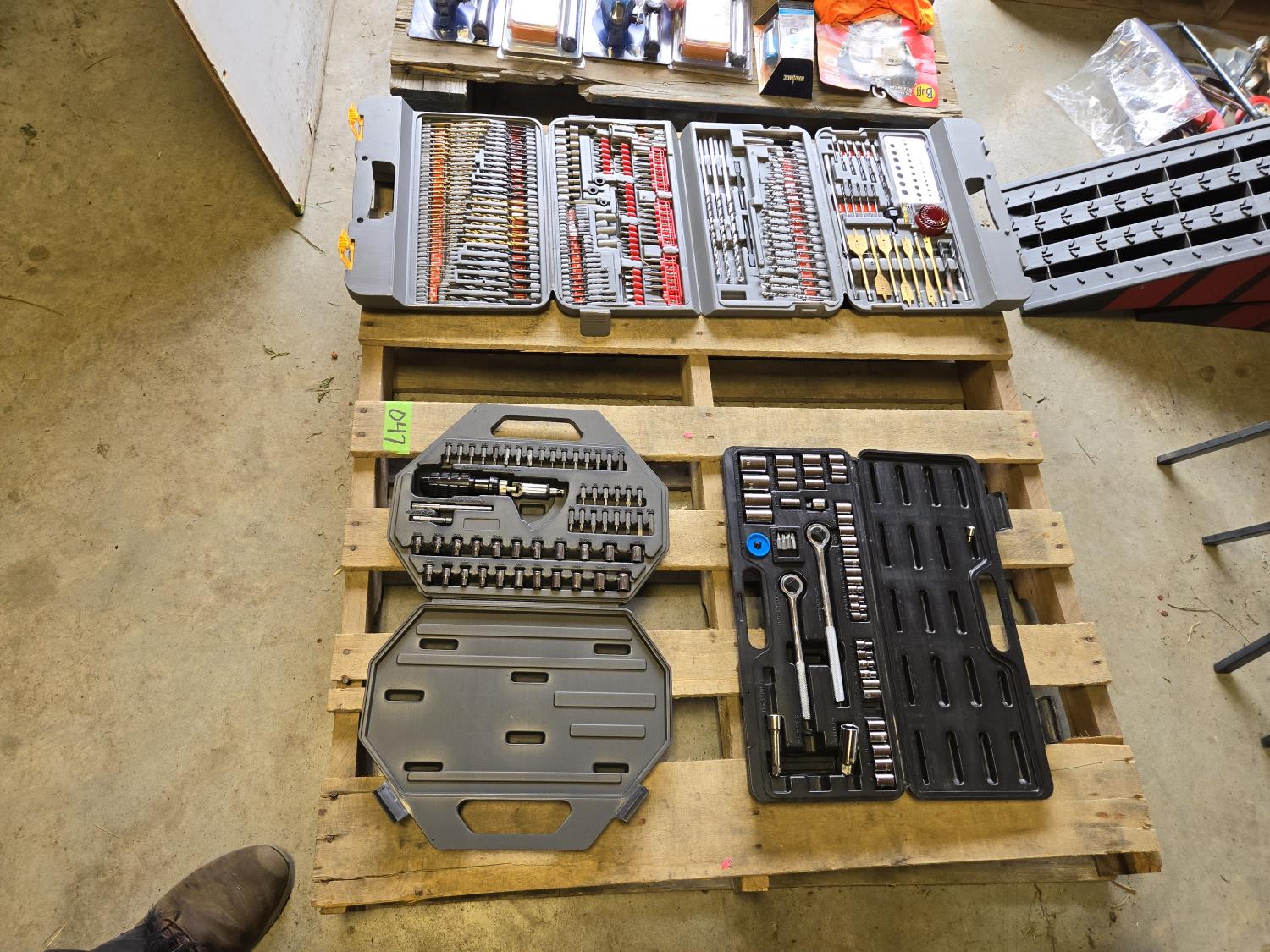 set of Ryobi 215 piece drilling and driving kit, (1) socket set, (1) Imperial and metric socket set may have a couple of pieces missing
