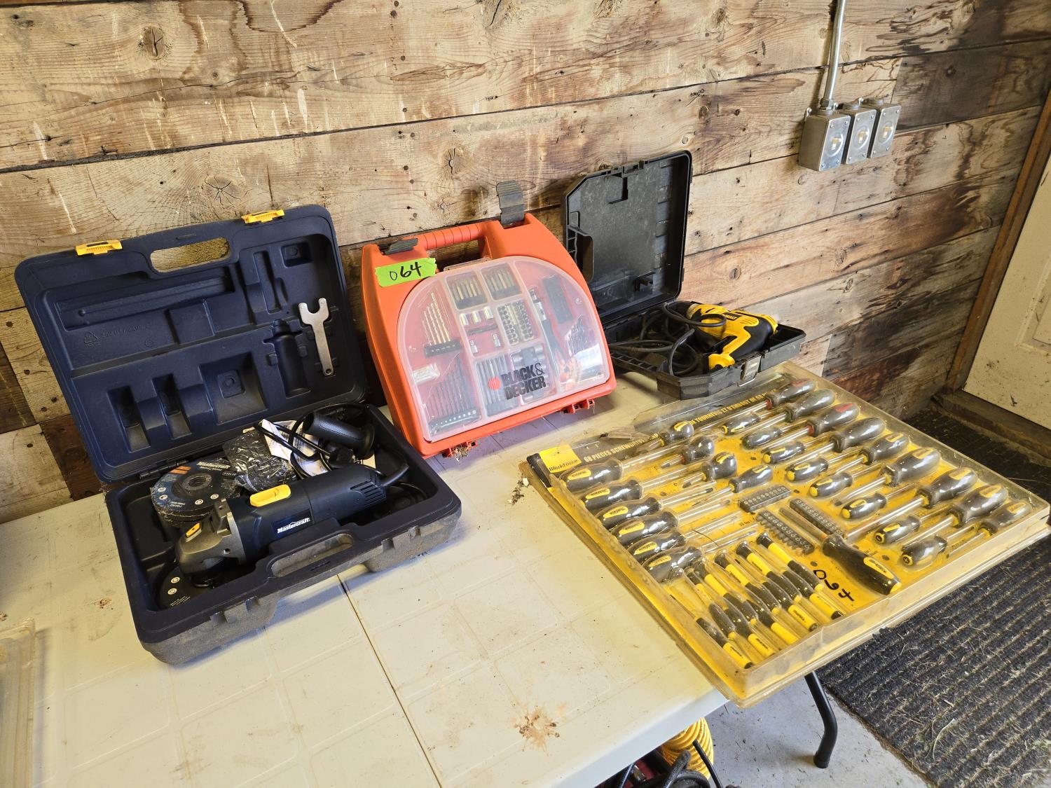 238 Workforce 68 Piece Screwdriver Set, Dewalt Electric Drill, Mastercraft 4.5 Inch Angle Grinder