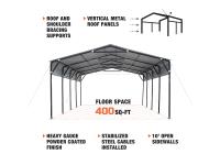 3015 TMG Industrial TMG-MSC2020 20 Ft X 20 Ft Metal Shed Carport (Unused)