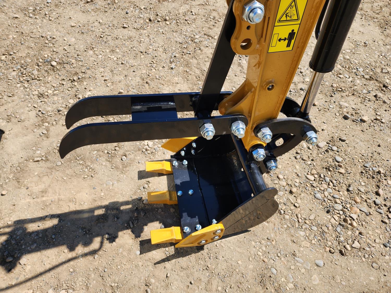 Enclosed cab, 420CC gas engine, 14 inch dig bucket, manual thumb, backfill blade, 6 inch rubber tracks